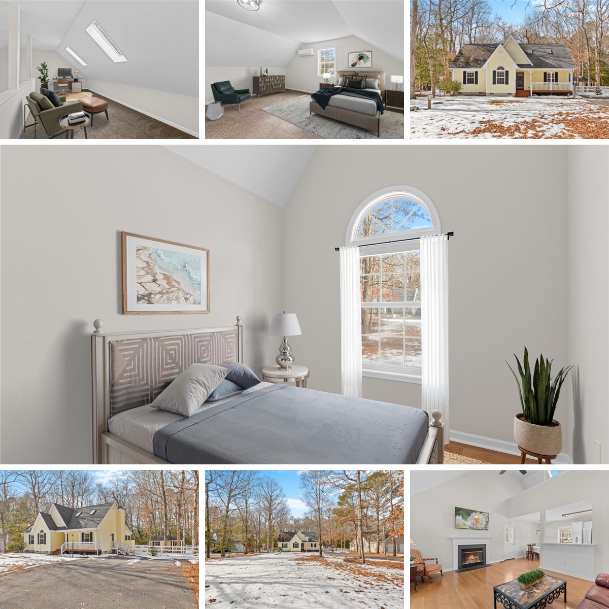 Down the hall, you will find a full bath, laundry area, and a secondary bedroom highlighted by a vaulted ceiling and a beautiful Palladian window that fills the room with natural light. Another bedroom offers flexibility for guests, family, or a home office. The primary suite provides a peaceful retreat, featuring an upgraded en suite bath with a soaking tub, quartz topped dual vanity, modern lighting, and a tiled glass enclosed shower. A window above the tub allows fresh breezes to drift in while you relax and unwind.