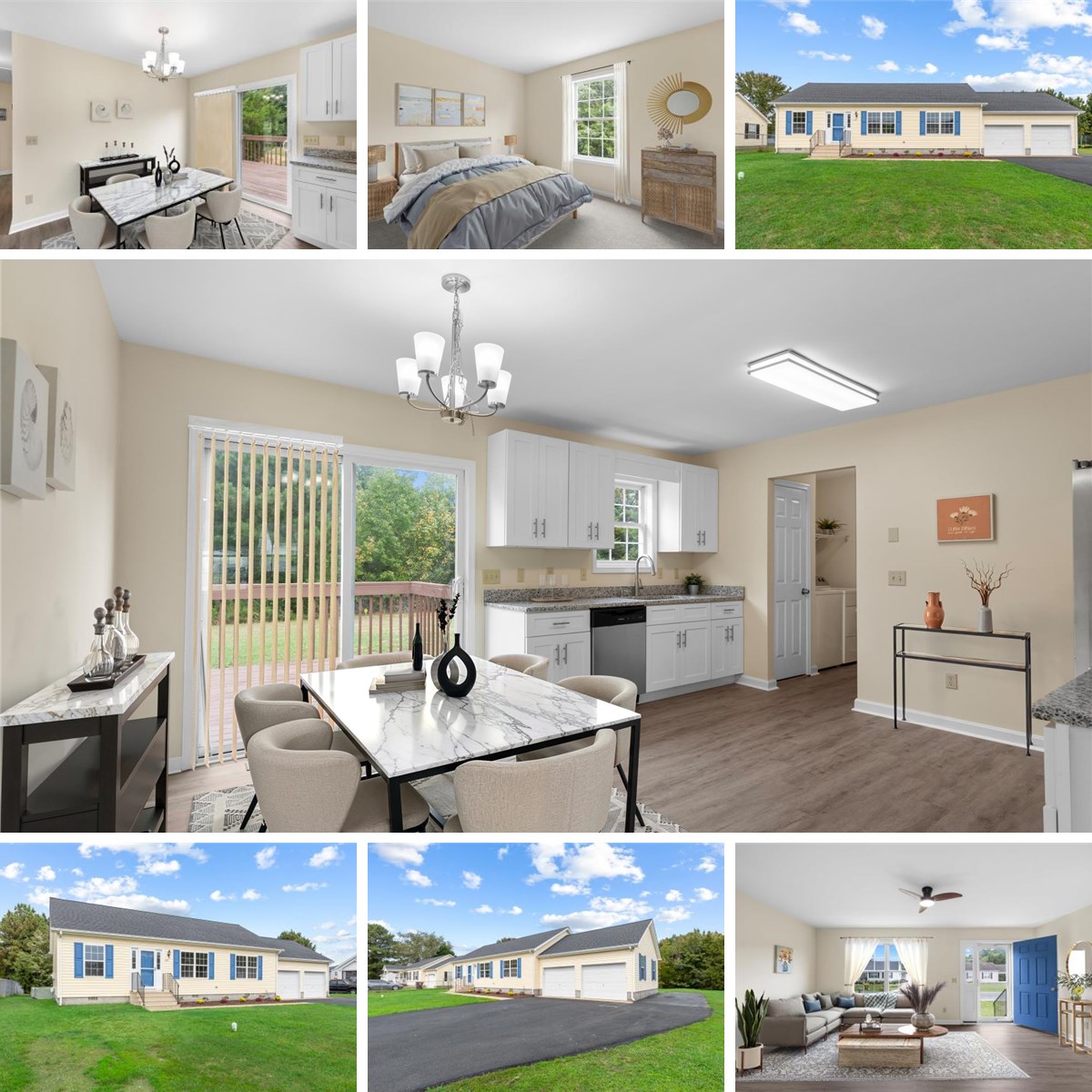 This beautifully renovated 3-bedroom, 2-bath home shines with updates inside and out. Featuring excellent curb appeal with fresh landscaping, the home has been renovated top to bottom for move-in-ready comfort. The living room and kitchen feature new luxury vinyl plank flooring, while all three bedrooms have brand new carpet. Fresh neutral paint has been applied throughout, including all trim and closets, creating a bright and welcoming feel. The kitchen has been fully renovated with new white cabinetry, granite countertops, and brand-new appliances. A sliding glass door in the eat-in kitchen opens to the rear deck and backyard, which backs to trees for added privacy. Both bathrooms have been updated, and the laundry room off the kitchen provides convenient access to the spacious 2-car garage. This home has a new roof along with other system upgrades and is offered with a 1 year home warranty combining modern finishes with peace of mind. Located just minutes from the Choptank River and historic downtown Cambridge with its many shops, restaurants, and waterfront charm, this home is a fantastic opportunity to enjoy modern living in a convenient setting.
