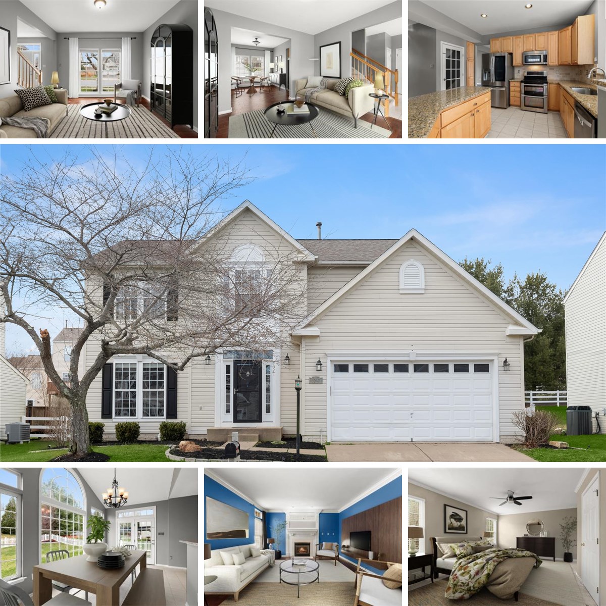Welcome to 1203 Kingsbridge Terrace, a beautifully appointed Colonial nestled in the highly sought-after Nottingham community of Mt. Airy. A welcoming foyer opens to the formal living and dining rooms, both enhanced by rich hardwood floors, creating an inviting setting for everyday living and special gatherings alike. The eat-in kitchen is thoughtfully designed with sleek stainless steel appliances, granite countertops, decorative backsplash, ample cabinetry, and a center island with a breakfast bar. Just beyond, the sun-filled breakfast room impresses with soaring cathedral ceilings, striking palladium windows, and direct access to the patio and fenced backyard perfect for seamless indoor-outdoor living. The adjacent family room, anchored by a cozy fireplace and accented with hardwood floors, offers a warm and comfortable space to unwind. A convenient laundry room, powder room, and access to the attached two-car garage complete the main level.