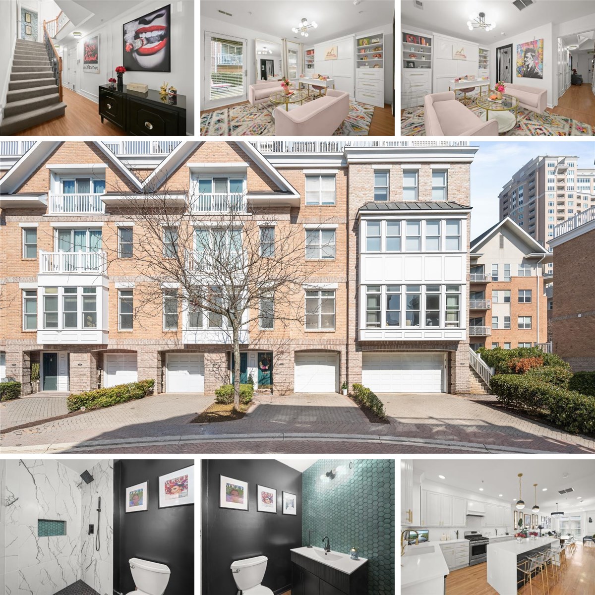 Introducing this exquisite four-level home in the sought-after Harborview community offering three bedrooms, three and a half bathrooms, a rooftop terrace, garage and so much more. This stunning home boasts exceptional details with modern finishes and every space is bathed in natural light with tall ceilings and rich hardwood floors. The interior is graced a freshly painted neutral color, complemented by sophisticated custom trim throughout and upgraded lighting fixtures including Waterford Crystal chandeliers and LED recessed lighting. Step inside where the elegant foyer showcases iron balusters in the staircase that continue through each level. The entry level includes a bedroom suite with sliding pocket doors to an ensuite bathroom featuring marble tile and a walk-in shower. The bedroom also has access outside to a fenced backyard with a paver stone patio. Upstairs, the redesigned main level showcases an open concept design, perfect for modern living. Prepare your favorite meals in the remodeled kitchen that is equipped with stainless steel appliances, 42-inch cabinets with undermount lighting, quartz countertops, a tile backsplash, and a sleek waterfall island with seating. Sliding glass doors in the kitchen open outside to a balcony, perfect for grilling or dining al-fresco. The spacious dining area can accommodate gatherings of any size, while the living room provides a cozy spot to kick up your feet. Finishing the main level is a half bathroom. Ascend upstairs where the lavish primary bedroom suite awaits, complete with a sitting area and a secondary closet. The luxurious en-suite bathroom boasts marble tile with a heated floor, a dual-sink vanity, a freestanding soaking tub, a Starphire Ultra-Clear glass walk-in shower, and a massive walk-in closet with a custom California Closets system. Also located on this level is laundry and a storage closet in the hallway. Up one more flight, the top level includes a third bedroom and third full bathroom that is ideal for guests. A spacious family room on this level is made for indoor entertaining or lounging, complete with a wet bar. A staircase leads up to the expansive rooftop terrace with remarkable views of the Inner Harbor, marina and the city skyline. Host get-togethers, lounge, enjoy Fourth of July fireworks and more, all while enjoying this incredible outdoor space. The desirable Harborview community offers spectacular resort-style living with a wealth of amenities including 24/7 security, community pool, fitness center, snow removal, and meticulously maintained common spaces. Explore the walking paths along the waterfront harbor promenade, award-winning restaurants, marinas, fountains, and all that this fantastic neighborhood has to offer. Additional recent updates include dual-zoned HVAC systems with smart home thermostats, along with a roof that is currently under warranty. Other highlights include an ADT security alarm system with cameras and two water heaters.