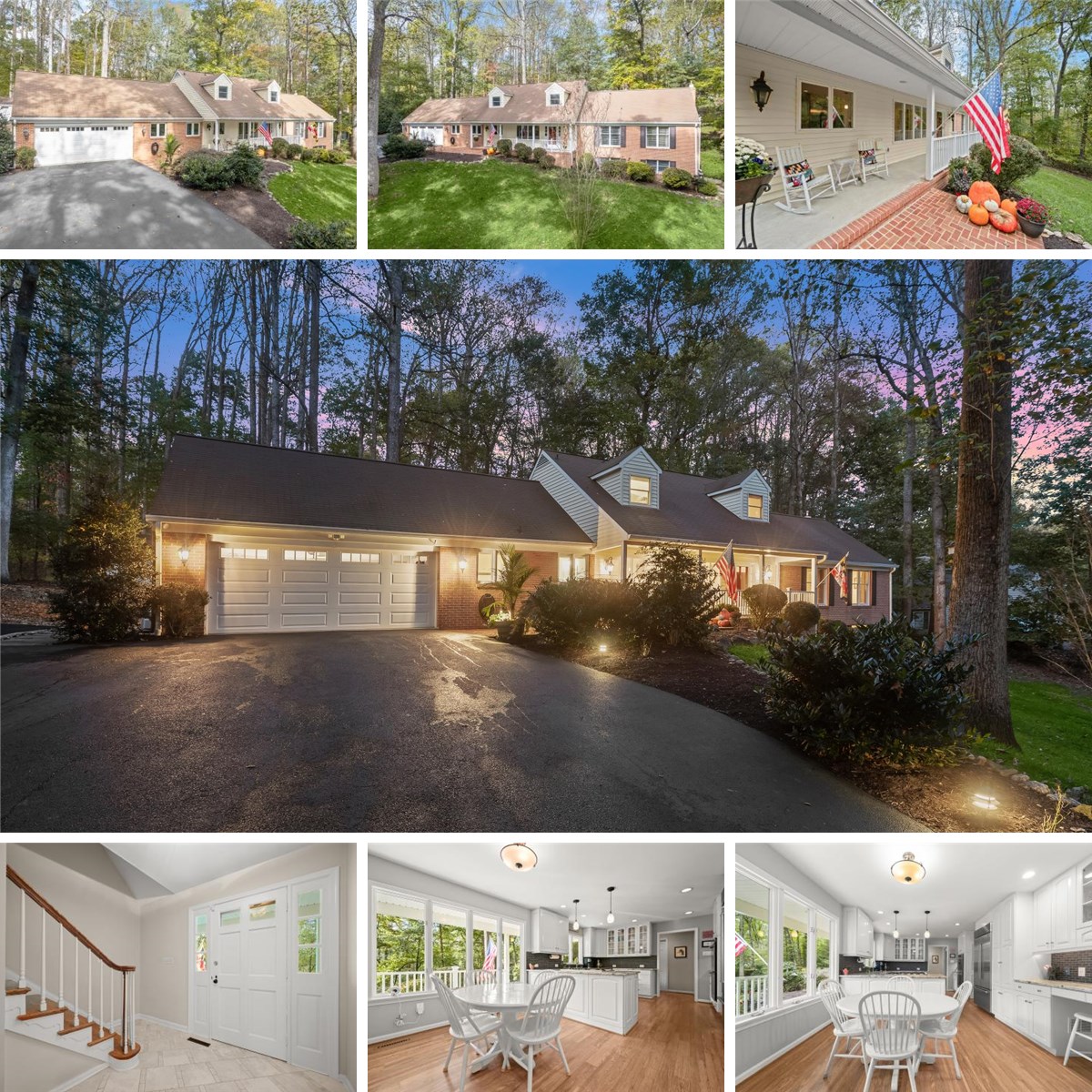 Introducing this extraordinary one-of-a-kind home tucked away in the sought-after Woodmark neighborhood in Ellicott City, offering a peaceful retreat on nearly an acre surrounded by mature trees. Featuring three bedrooms with four and a half bathrooms, this home has been thoughtfully updated inside and out, with meticulous attention to detail and timeless design. Beautifully manicured landscaping and a charming covered front porch create a warm welcome as you arrive. Inside, a soft color palette, sun-filled windows, and rich hardwood floors establish an inviting ambiance. Prepare your favorite meals in the gourmet eat-in kitchen that boasts granite countertops, a tile backsplash, lighted cabinetry, and a breakfast nook with a built-in desk station. Stainless steel appliances include a five-burner gas cooktop with telescopic downdraft, double wall ovens, and a Sub-Zero refrigerator replaced in 2024. A cozy wood-burning fireplace with brick surround anchors the elegant living room, enhanced by wainscoting, crown molding, and built-in shelving. French doors from the formal dining room open to an expansive family room with a soaring wood-beamed cathedral ceiling, skylights, and a stunning stacked-stone feature wall. Floor-to-ceiling windows frame peaceful views of the lush surroundings, creating an inspiring space for gathering or unwinding. This side of the home also includes a half bathroom and a laundry room with more storage and garage access. The main level hosts the primary bedroom suite with dual closets and sliding doors to a deck with a relaxing hot tub. The luxurious ensuite bathroom showcases a frameless glass shower with a rainfall showerhead and built-in bench. A second bedroom and a second full bathroom with a tub shower complete the main level. Upstairs, the top level is a private third bedroom suite with a walk-in closet and a spacious walk-in shower in the bathroom. Downstairs, the finished walk-out lower level extends the living area with a large recreation room featuring a gas fireplace and a wet bar, ideal for entertaining. A home office provides a quiet workspace and could serve as a fourth bedroom with an adjacent full bathroom that has a walk-in shower. A versatile bonus room with a walk-in closet offers space for a gym, playroom, another office, or creative studio. Ample storage abounds, including an expansive utility room and separate storage room. Outdoor living shines with a Tennessee flagstone patio perfect for barbecues or starlit evenings. Other recent updates include a new HVAC system (2025) and water heater (2024). Additional features such as outdoor lighting, a storage shed, and a two-car garage ideal for auto enthusiasts, complete this home. Nestled across from 28 acres of conserved woodlands and a scenic neighborhood pond down the street, this tranquil setting offers both natural beauty and a true sense of retreat.