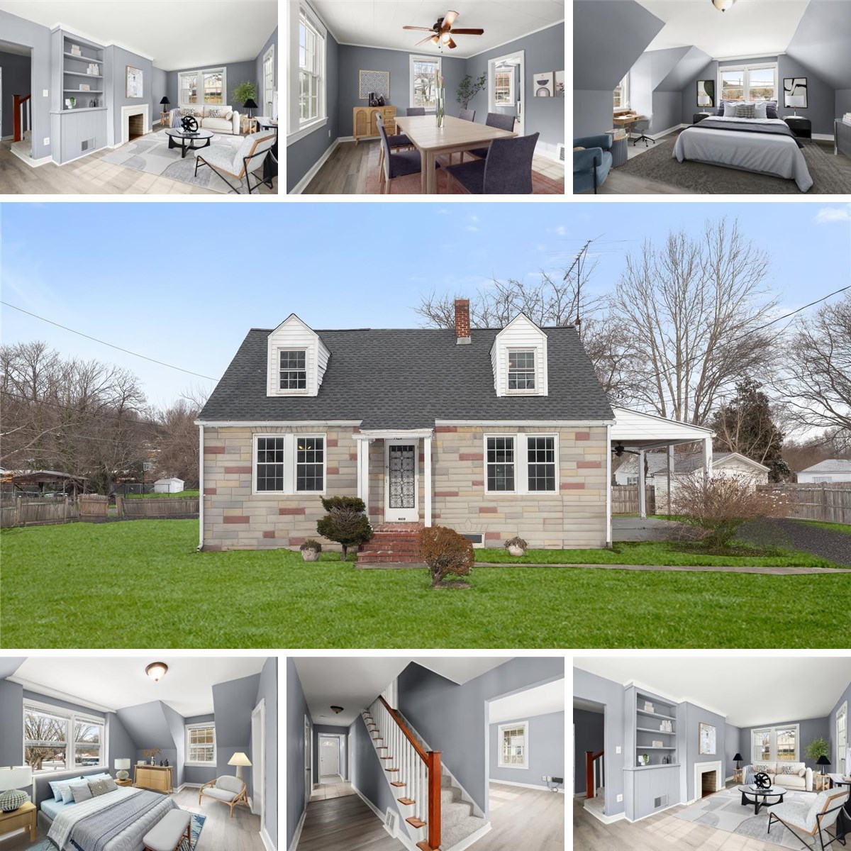 to the space. Step out to the side porch overlooking the fenced yard, an ideal spot for morning coffee or evening drinks with family and friends, completing the east side of the property. The dining room, situated just off the kitchen, boasts crown molding, luxurious flooring, and convenient access to the kitchen, resulting in a seamless flow for everyday living and entertaining. The kitchen is filled with natural light from a bay window and offers ample storage, ceramic tile flooring, marble-inspired countertops, and stainless steel