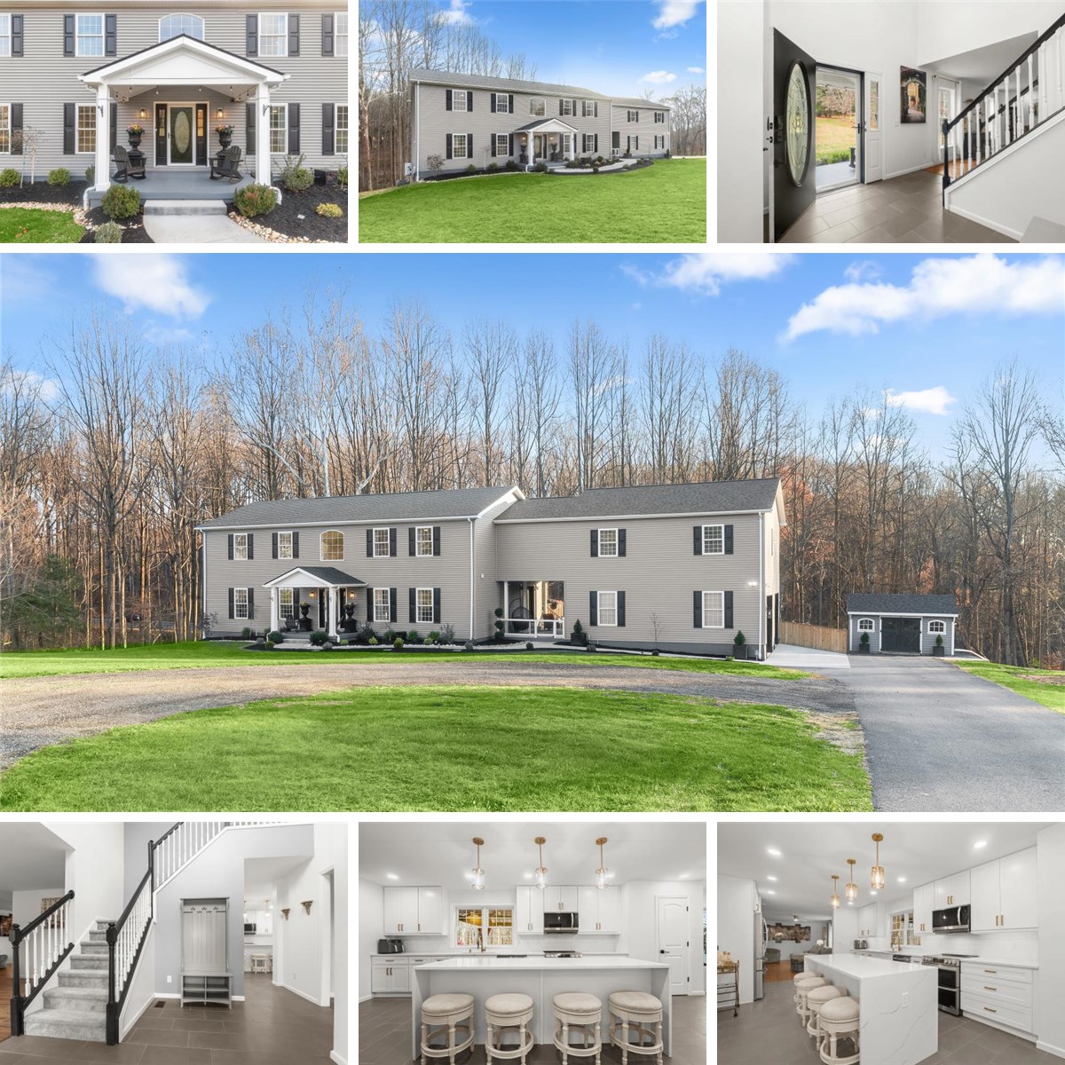 This remarkably renovated home is tucked away on a sprawling 3.05 acres, offering privacy and tranquility. Thoughtfully redesigned with no expense spared, it features a potential guest home or fifth bedroom in the generous space added above the garage, complete with a full kitchen, living area, bedroom, full bath, and storage. The possibilities are endless. The gorgeous kitchen renovation includes an oversized center island, quartz counters, decorative tile backsplash, exquisite lighting, smart stainless steel appliances, a double oven, a pantry, and a casual dining area. From the kitchen, enjoy access to a lovely breezeway and an outstanding outdoor retreat that includes a newly added deck, patio, pool, hot tub, entertainment area, and firepit. Summer barbecues will be unforgettable. Inside, the spacious family room offers the perfect place to relax, complemented by a large formal dining room ideal for gatherings and a convenient home office. A tastefully updated powder room completes the main level. Upstairs, the expansive primary suite features a sitting area, ceiling fan, and a renovated walk-in closet. The luxury primary bath is beautifully appointed with brand new flooring, separate vanities, a soaking tub, and a shower. The bedroom level also includes a laundry room with a Samsung smart washer and dryer, along with two generously sized bedrooms that offer plush carpeting, ceiling fans, walk-in closets, and an additional full bath. The impressive lower level provides a fourth bedroom, a full bath with dual shower heads, a recreation room, and an exercise room, with walkout access to the inviting patio. Enjoy swimming in the pool, roasting marshmallows at the fire pit, or relaxing in the hot tub. Additional updates include a fully fenced backyard, custom shed, breezeway, two car garage, home security cameras, washer, dryer, and an electric dog fence in the front yard. This home truly has it all.