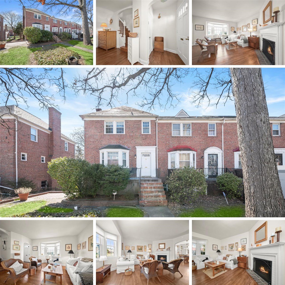 Welcome to this inviting three bedroom, two bathroom end-unit brick rowhome with three levels of living space. As you arrive, a front porch greets you overlooking the lawn, along with a brick side patio for spending time outside. Inside, the front living room boasts a sun-filled bay window, a wood-burning fireplace and hardwood floors that continue into the dining room. The kitchen has brand new flooring and a versatile breakfast nook that could also be used as a pantry, with balconies on either side that are perfect for grilling, dining al-fresco or simply lounging. Upstairs, each of the three bedrooms also feature hardwood floors, with a full bathroom that has a tub shower. Downstairs, the lower level offers endless potential to meet your needs, with a recreation room highlighting a second wood-burning fireplace. The second bathroom on this level has a walk-in shower, and the utility room has laundry and access outside. A one car garage adds convenience, with additional parking in the driveway.