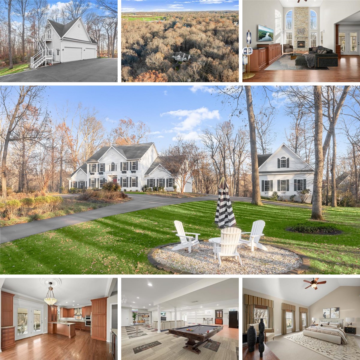 Nestled deep within a tranquil, wooded setting, this exceptional residence offers privacy, elegance, and a circular driveway leading to a stunningly renovated home by a renowned renovation contractor known for exceptional craftsmanship. Thoughtful updates include a stunning gourmet kitchen, a luxurious primary bathroom with marble finishes and steam shower, a gas fireplace, and gleaming hardwood flooring throughout the main level. Additional noteworthy renovations and additions include the rear, covered porch, hardscaping, HardiePlank siding and detached four car garage with high ceilings, a lift and loft above it, offering 8+ car garage parking in total. Step into the dramatic two-story foyer, highlighted by rich hardwood floors and refined accent molding. Formal living and dining rooms continue the sophisticated aesthetic, with custom trim work and a striking modern chandelier anchoring the dining space. The gourmet kitchen is a true centerpiece, featuring rich wood, soft-close, inlay cabinets, granite countertops, stainless steel appliances, a peninsula island, and a spacious dining area with access to the covered porch. Just off the kitchen, the expansive family room impresses with a two-story stacked stone fireplace, custom built-in entertainment center, and abundant natural light. Enjoy the convenience of a main-level primary bedroom suite, complete with a soaring vaulted ceiling, an expansive walk-in closet with custom organization, and a spa-inspired bath boasting marble tile, a dual granite vanity, a corner soaking tub, and a large marble steam shower with built-in seating. A main-level office with custom built-in bookcases provides the perfect work-from-home retreat. Upstairs, three generously sized bedrooms await. Two share a dual-entry full bathroom, while the third bedroom enjoys access to an additional dual-entry hall bath, offering both comfort and flexibility. The walk-out lower level is ideal for entertaining, featuring a spacious recreation room with a dry bar and refrigerator, along with a substantial storage room. Outdoor living is equally inviting, with a covered porch off the kitchen leading down to a patio and backyard oasis. The impressive detached four-car garage is a standout feature, offering extra-high ceilings, a vehicle lift, a loft, plumbing, and extensive storage shelving, perfect for car enthusiasts or hobbyists. Additional updates include HardiePlank siding, a redone driveway, well pump, heating and cooling systems and more. Ideally located with easy access to Howard County Schools, Western Regional Park, Cattail Creek Country Club, major commuter routes, shopping, dining, and entertainment, this extraordinary property seamlessly blends luxury, craftsmanship, and functionality in a serene natural setting.