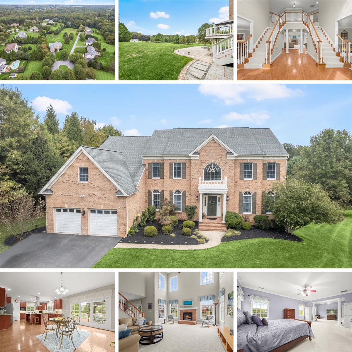 Experience the perfect harmony of grandeur, comfort, and seclusion in this stately Colonial residence, gracefully positioned on over an acre at the end of a peaceful cul-de-sac and framed by serene wooded vistas. With more than 8,000 square feet of impeccably crafted living space, this home embodies the finest in luxury living. A dramatic two-story foyer welcomes you with sweeping staircases, architectural columns, and refined millwork, setting an impressive tone carried throughout the home. The formal living and dining rooms exude classic sophistication, enhanced by rich moldings and gleaming hardwood floors that lead into the heart of the home, a gourmet chef’s kitchen featuring an oversized granite island, custom cherry cabinetry, and premium stainless steel appliances. Seamlessly transition to the expansive deck with canopy, the perfect retreat for alfresco dining while overlooking picturesque, tree-lined views. The sun-drenched two-story family room serves as a magnificent yet inviting gathering space, anchored by a soaring wall of windows and a stunning wood-burning fireplace with a brick surround. Thoughtful main level amenities include a home office, an elegant powder room, and a spacious laundry/mudroom with granite countertops, abundant cabinetry, utility sink, and direct garage access.