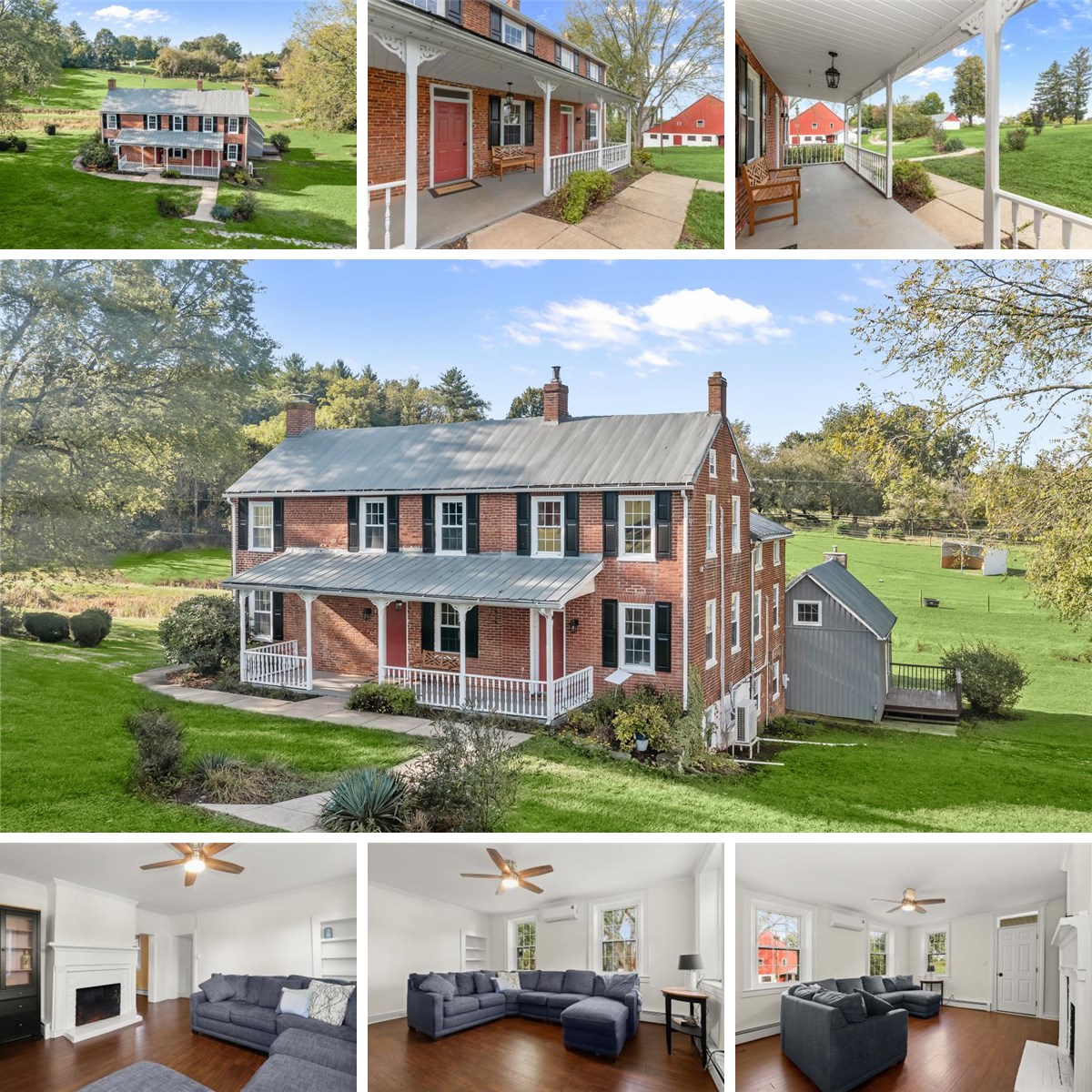 Full of charm and timeless architectural details, this 1920 farmhouse sits on over 15 picturesque acres, thoughtfully designed for both equestrian living and modern comfort. The property features a 3-car garage, a classic barn, two fenced pastures, two run-in sheds, and updated electric fencing, making it ideal for horses or hobby farming. Outdoor living shines with a welcoming front porch, a spacious deck, a balcony with sweeping views, and a firepit for relaxing under the stars. Step inside to discover a home that blends historic character with modern updates. The dining room, situated perfectly between the kitchen and living room, features tall ceilings and luxury vinyl plank flooring that seamlessly flows throughout the main spaces. The living room exudes warmth with a wood-burning fireplace, built-in bookcase, and crown molding, while the kitchen delights with granite counters, stainless steel appliances, subway tile backsplash, ample storage, and a breakfast area. A main-level bedroom with plush carpet and a beautifully updated full bath completes this level. The upper level invites you with a primary suite that offers a sitting room, office, or possible additional bedroom with private staircase access. Two more bedrooms and a hall bath with hexagon ceramic tile, balcony access, and a clawfoot tub round out this level with vintage appeal. The finished lower level expands your options with space for an office or possible bedroom, workshop, laundry, and abundant storage. A detached cottage provides even more flexibility, whether for guests, a private office, or a creative retreat, featuring a living room with a wood-burning stove, plush carpet, loft, and bonus area. Recent updates include driveway, fencing, electric fencing, and run-in sheds. Conveniently located near MD-97, MD-140, and MD-31, this rare 1920 estate combines historic charm, architectural character, and equestrian amenities into a truly special offering.