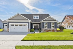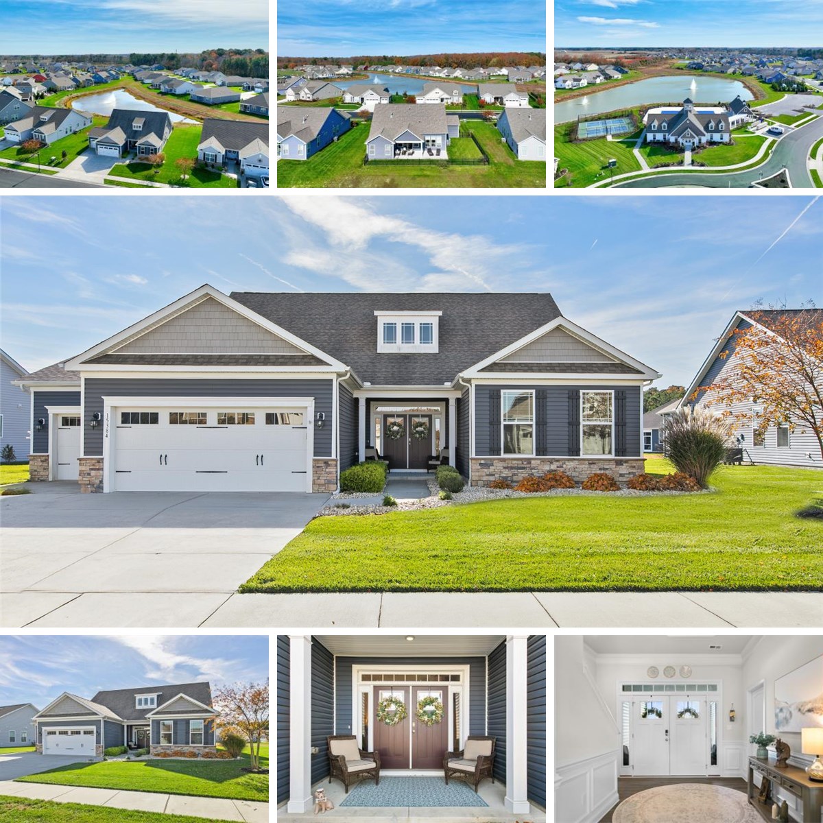 Welcome to this stunning five-bedroom, three-and-a-half-bath home in the sought-after Woodfield Preserve community. Being sold furnished, with minor exclusions. Beautifully landscaped grounds and a three-car garage create an inviting first impression. The exterior features a mix of vinyl and shaker siding, a stone façade, board and batten shutters, and multiple roof peaks that add architectural interest. A wide walkway leads to the covered front porch with squared columns and a striking double entry door accented by transom and sidelights, offering a perfect blend of style and timeless appeal. Step inside to a spacious foyer with a tray ceiling and elegant design elements throughout, including a soft neutral color palette and wainscoting, deep crown molding and luxury vinyl plank flooring. The gourmet kitchen features gorgeous quartz countertops and crisp white cabinetry with crown-topped uppers, a classic subway tile backsplash and a suite of stainless-steel Frigidaire Gallery appliances including a gas cooktop with range hood and built-in oven and microwave. A generous breakfast bar accommodates seating for four, while the bright breakfast nook sits adjacent to a double-door pantry for added convenience. The open-concept layout flows seamlessly from the kitchen to the spacious dining room accented by lovely wainscoting and a living room with a cozy gas fireplace, ideal for entertaining and everyday living. The main level offers convenient single-level living with three of the five bedrooms, including the primary suite with dual-sink vanity, tiled shower with bench seating, private water closet, and deep walk-in closet. Two additional bedrooms at the front of the home provide privacy for family or guests, while a full bath and stylish powder room add convenience. The main level also includes a drop zone off the garage with built-in bench and coat hooks, and a laundry room with Frigidaire washer and dryer plus ample storage space. Upstairs are two more generously sized bedrooms and a full bath, one large enough to include a comfortable seating area or serve as a guest suite, hobby space, or media room. Outside, enjoy a fenced backyard with peaceful pond views from multiple angles, a perfect setting for relaxing in the shade or hosting gatherings. Residents enjoy this amenity-filled community complete with a large pool, fitness center, clubhouse, pickleball courts, a dog park and playground. Golf enthusiasts will appreciate living right next door to the Rookery Golf Course while everyone can delight in the town of Milton’s charm through its architecture, industry, and history. Don’t wait, schedule your private showing today!