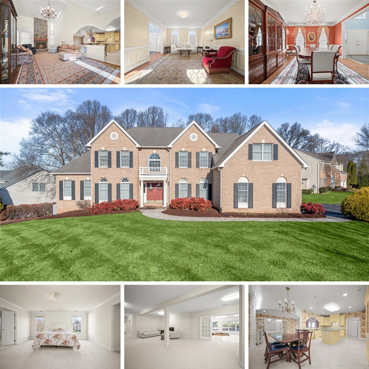 Estate Sale, SOLD -AS-IS. This spacious brick-front colonial, ideally situated on a premium lot in a highly sought-after community, offers over 8,500 sq. ft. of exceptional living space. A stately portico entrance opens to a dramatic two-story foyer, flanked by elegant formal living and dining rooms adorned with hardwood flooring and sophisticated accent molding. The gourmet kitchen is a chef’s dream, featuring an expansive center island, granite countertops, 42-inch cabinetry, and a breakfast area. A bright breakfast room flows into an inviting sunroom through French glass doors, with access to the side deck, perfect for indoor-outdoor entertaining. Adjacent to the kitchen, the impressive two-story family room showcases a striking stone fireplace as its centerpiece. The main level also includes a private office with built-in bookshelves and a full guest suite complete with a walk-in closet and en suite full bath. Dual staircases lead to the upper level, where the luxurious primary suite awaits. This retreat offers a spacious sitting room, an additional bonus room with a cathedral ceiling, and a spa-like en suite bath featuring a soaking tub, separate shower, and dual vanity. Three additional bedrooms and two full bathrooms complete the upper floor, one bedroom with a private en suite bath and the remaining two connected by a dual-entry bathroom. The lower level is an entertainer’s dream, offering a vast recreation room with a gas fireplace, multiple flexible bonus rooms ideal for a media room, exercise studio, or hobby space, a full bathroom, abundant storage, and walkout access to a beautiful bluestone patio. Perfectly located with convenient access to major commuter routes and surrounded by plentiful shopping, dining, and entertainment options, this exceptional residence blends luxury, comfort, and unmatched space.
