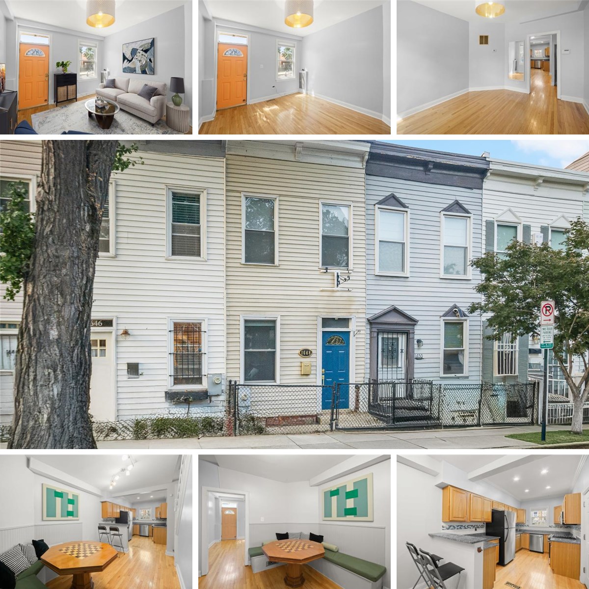 Inviting three-level Federal-style rowhome blending classic charm with thoughtful updates in the heart of Washington, DC. Step inside the living room where hardwood flooring stretches across the main and upper levels, creating a seamless flow. Recessed lighting and carefully selected fixtures add a touch of sophistication while brightening the space. The open kitchen and dining combination is designed for both everyday living and entertaining. The dining area features a built-in banquet with beadboard trim and seating, making it a cozy yet polished gathering spot. In the kitchen, stainless steel appliances, including a gas range, complement the granite counters, tile backsplash, and breakfast bar, delivering both form and function. Upstairs, the home offers two comfortable bedrooms with a full bath in between, finished in a modern style. The lower level has been thoughtfully finished with tile flooring and includes a laundry area and half bath, offering additional space to suit a variety of needs. The exterior features a small fenced front area and a private fenced back patio, providing a quiet spot for fresh air.