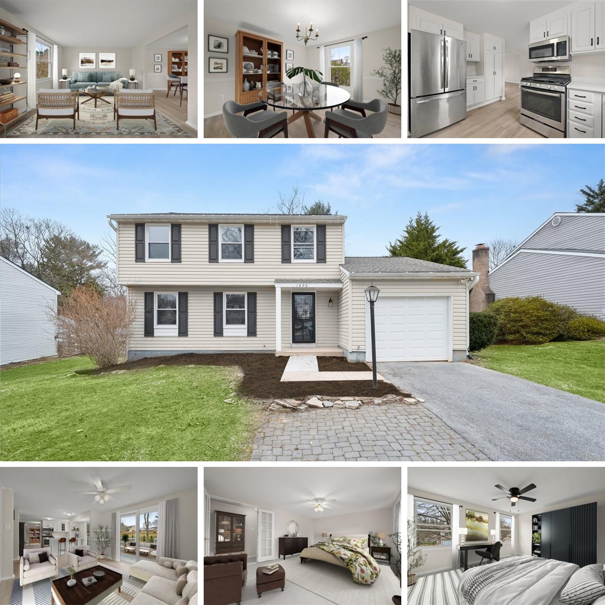 Welcome to 1696 Gemini Drive, a beautifully renovated Colonial tucked into the sought-after Carrolltowne neighborhood, where classic charm meets modern comfort. Step inside to discover bright, airy interiors thoughtfully updated with luxury wide plank vinyl flooring, fresh paint, updated lighting and hardware, and stylish finishes that create a cohesive, move-in-ready feel throughout. The welcoming foyer sets the tone and opens seamlessly to gracious living and dining rooms, offering the perfect backdrop for both everyday living and hosting memorable gatherings. The heart of the home is the inviting eat-in kitchen, beautifully appointed with quartz countertops, display cabinetry, sleek stainless steel appliances, and a breakfast bar that effortlessly connects to the adjacent family room. Anchored by custom built-ins, the family room extends outdoors to an expansive deck and fenced backyard an ideal setting for entertaining, summer barbecues, or quiet evenings under the stars. A convenient powder room and direct garage access complete the main level. Upstairs, retreat to the spacious primary bedroom featuring elegant French doors and a private en-suite bath. Two additional bedrooms and a full bath provide comfortable accommodations for family or guests. The finished lower level expands the living space even further, offering a versatile recreation room, full bath, laundry area, and abundant storage making this home as functional as it is stylish and welcoming.