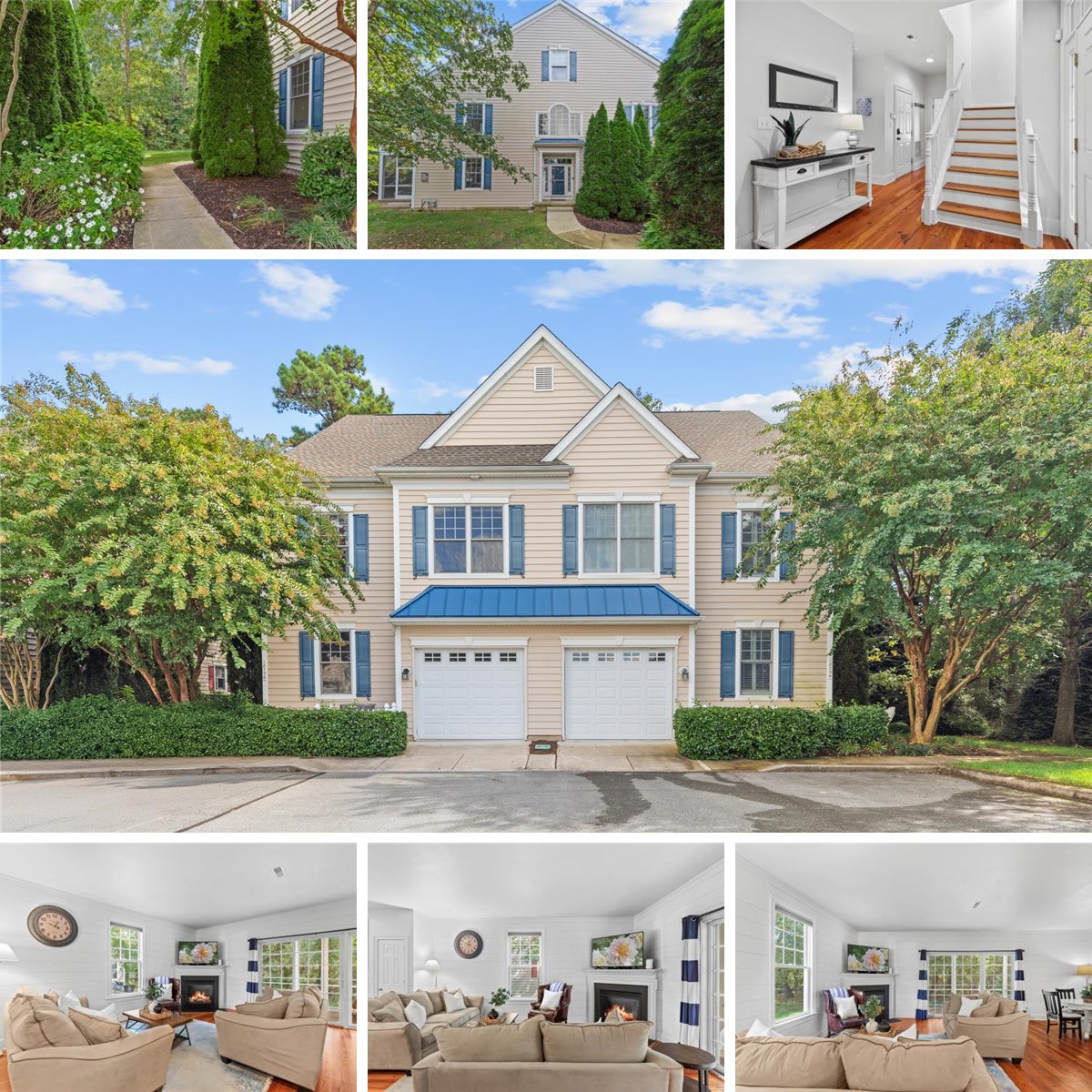This stunning twin home lives like a detached home, with thoughtful updates and attention to detail at every turn. Random-width reclaimed pine flooring flows throughout, complemented by meticulous millwork showcased in shiplap feature walls, staircase handrails, and tall baseboards, unexpected touches that elevate the home’s charm. The main-level open floor plan creates a seamless living experience. The gourmet kitchen is a chef’s dream, featuring custom 42” cabinetry, abundant granite countertops, a striking large-format tile backsplash, and stainless-steel appliances. The living and dining areas are wrapped in shiplap accent walls, anchored by a corner gas fireplace, perfect for gatherings with family and friends. Just off the living area, a spacious screened porch offers an ideal setting for al-fresco dining and enjoying the serene backyard. A main-level bedroom with an adjacent fully renovated hall bathroom provides convenience for one-floor living. Interior access to the garage adds a rare and practical touch and is not offered in all the home in this community. Upstairs, a beautiful millwork staircase leads to a bright landing with picture windows topped by a palladium window, creating a lovely light-filled crossroads. This level houses the laundry center and a flexible space ideal for a reading nook or cozy sitting area. The primary suite offers a millwork feature ceiling, two walk-in closets, an ensuite with a private water closet and shower, and a private balcony, perfect for morning coffee or evening cocktails. Two additional bedrooms each spacious, both with walk-in closets, share a well-appointed hall bathroom. The home’s bonus level, accessed via a staircase from the upper level landing, features additional natural light and flexible space that could serve as an office, playroom, or relaxation area, while also housing the home’s utilities.