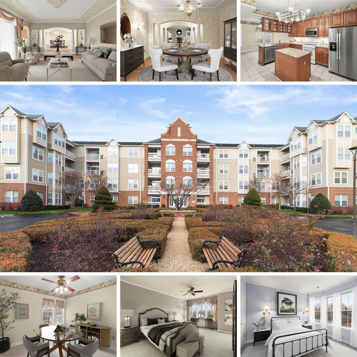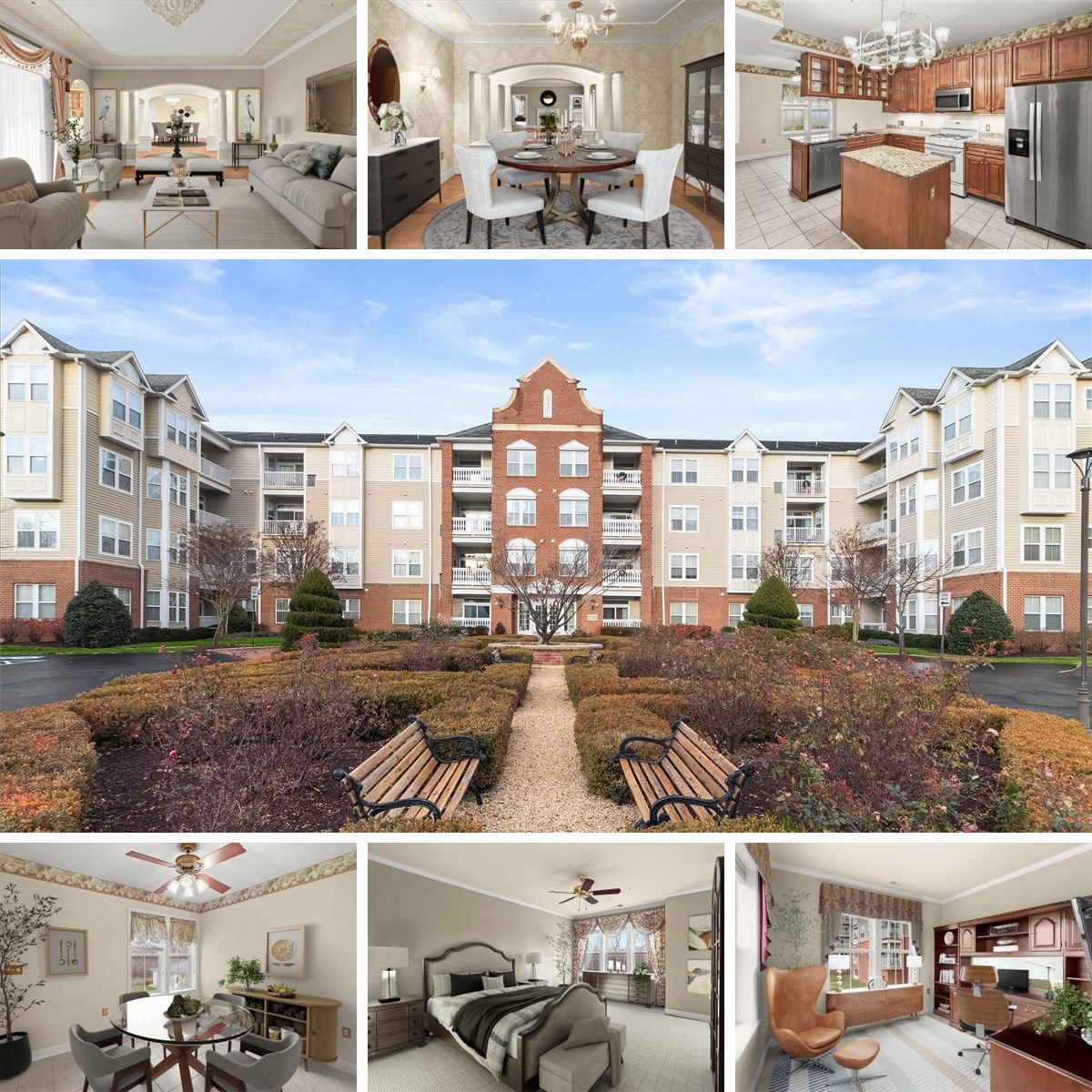 Welcome to 2250 Bear Den Road #104, a truly luxurious condo in the sought-after Park Place on the Tuscarora at Worman’s Mill, where exquisite details and thoughtful upgrades define every room. Rich hardwood floors, ornate millwork, stately columns, and classic moldings enhance the elegant living spaces. The welcoming foyer complete with a convenient powder room and coat closet opens to the formal living and dining rooms, beautifully framed by architectural columns. The living room features a cozy gas fireplace and access to a private balcony, while the dining room showcases timeless moldings that elevate every gathering.
