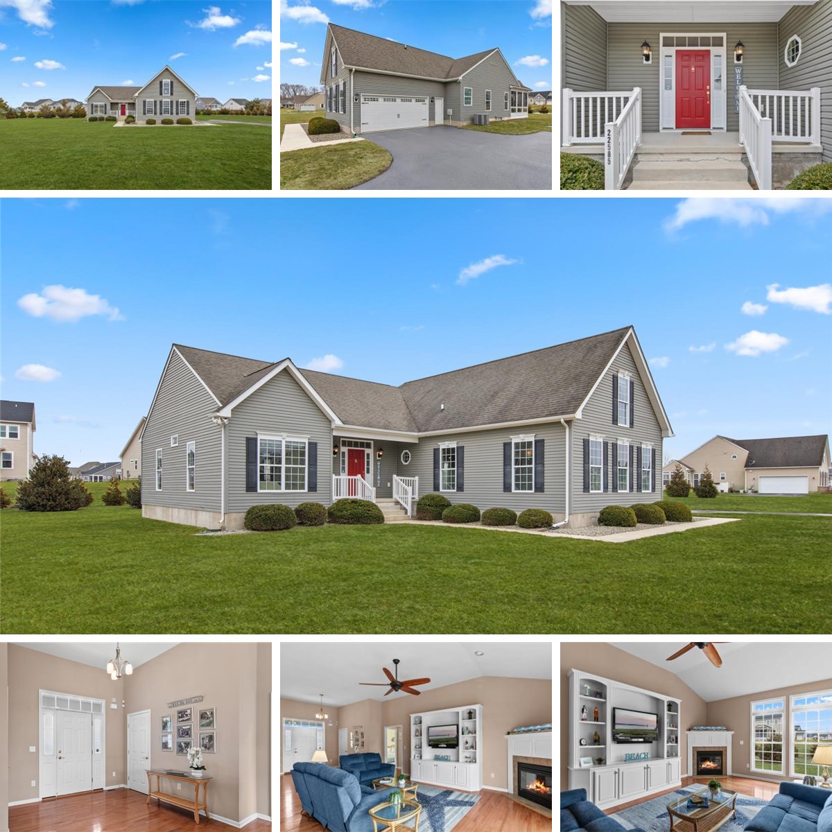 Set on a generous .82-acre homesite in a small, self-managed community, this meticulously maintained residence at 22585 Southern Pines Drive offers the perfect blend of thoughtful design, quality construction, and comfortable everyday living. Built by Rehoboth Signature Homes, this home reflects pride of craftsmanship and careful attention to detail throughout its approximately 2,474 square feet of living space. Inside, the open-concept floor plan creates an inviting atmosphere ideal for both daily living and entertaining. Rich hardwood floors flow through the main living areas, while the great room with soaring 10-foot ceilings serves as the heart of the home. A gas fireplace with custom enclosure and built-in cabinetry creates a warm and stylish focal point, while thoughtfully placed floor outlets make furniture placement easy and flexible. Comfort and efficiency are built in with dual-zone heating and air conditioning, propane heat, an Ecobee smart thermostat, and ceiling fans in every room. The well-appointed kitchen features stainless steel appliances, custom granite countertops, and ample workspace, perfectly positioned for gathering and conversation. Just beyond, the three-season sunroom extends the living space and offers a peaceful spot to relax while overlooking the spacious backyard. The home offers four bedrooms and three full baths, including a comfortable primary suite complete with dual vanities, a walk-in shower, and a soaking tub designed for relaxation. Everyday convenience continues with the washer and dryer included, a technology distribution cabinet, Ring security system, and whole-house surge protection. Outdoor living is equally impressive. The composite deck provides an ideal space for entertaining or enjoying quiet evenings, with a gas line already extended for a grill, and the gas hookup hose conveniently stored under the grill in the garage. The property also features an expanded 24’ x 24’ turned garage, providing generous space for vehicles, storage, or hobbies. Additional highlights include well and septic utilities and a conditioned crawl space, adding to the home's efficiency and long-term durability. With an annual HOA of just $400, this small community offers a peaceful setting while remaining close to the coastal attractions, shopping, and dining that make the Lewes area so desirable. Meticulously cared for, thoughtfully designed, and built with pride, this is a home where quality and comfort truly come together.
