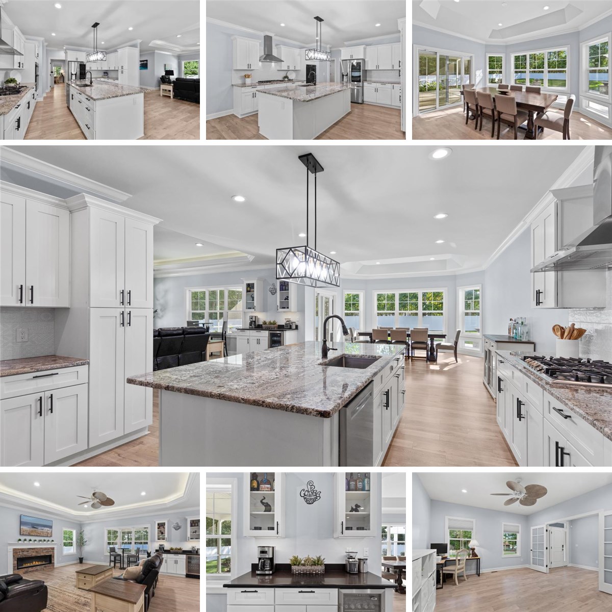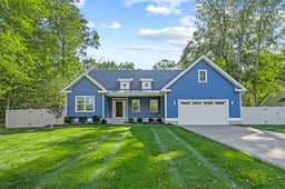 This stunning 3-bedroom, 2.5-bath contemporary rancher, built in 2021, situated on over half an acre in the peaceful and private community of Lakeview Estates. An impressive paver-stone driveway leads to the home, where a covered front porch invites you to relax and take in tranquil views of the lake across the manicured lawn as you listen to the soft rustle of mature trees in the breeze.