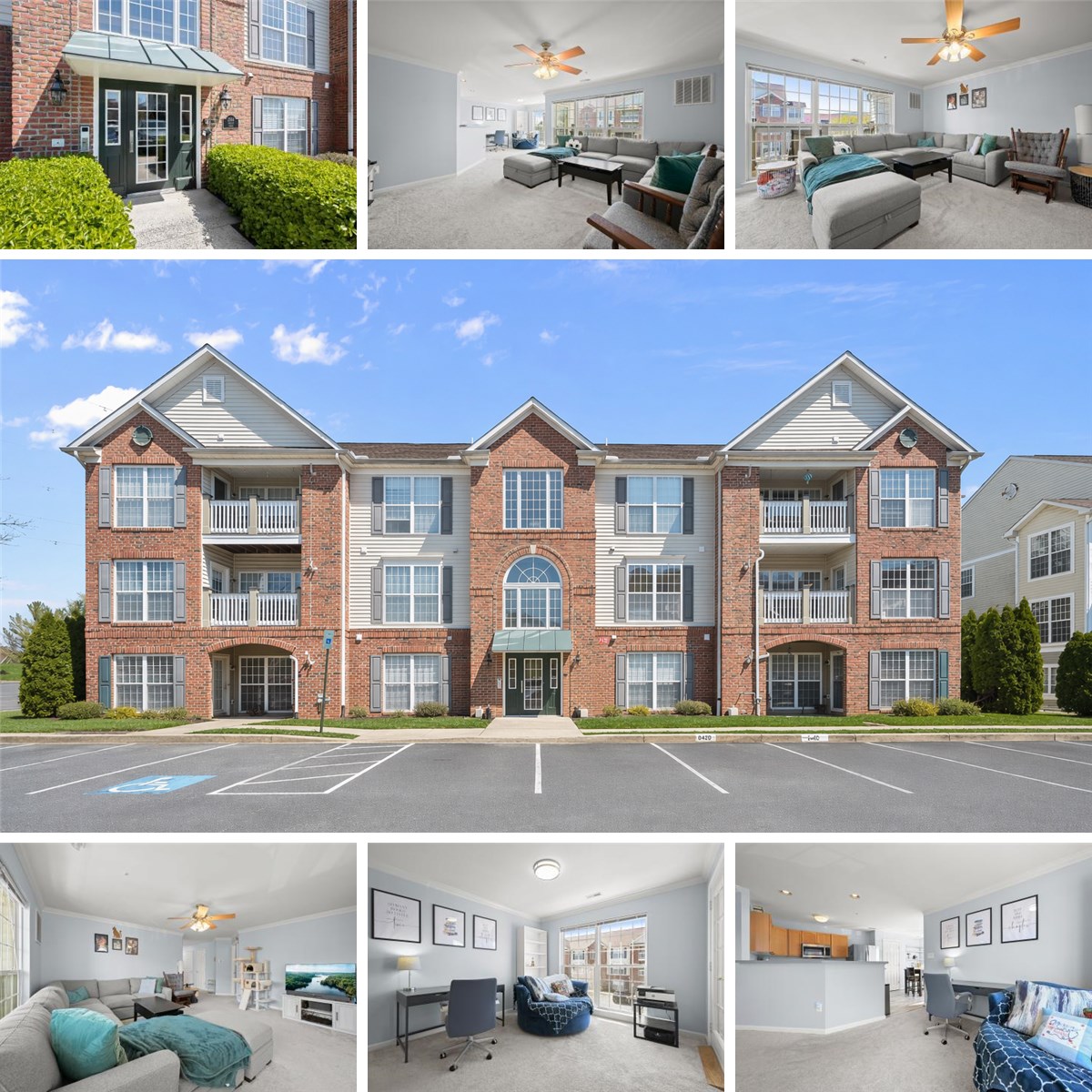 Welcome to the Ridgeview community in Frederick! This second-level unit offers a bright, open floor plan with plush carpeting throughout and abundant storage options. The inviting living area is accented by crown molding and custom blinds. It provides seamless access to the dining space, private balcony, or a flexible area ideal for a home office. The dining area flows effortlessly into the kitchen, where modern luxury vinyl flooring and natural light enhance the space. The kitchen is well-appointed with a breakfast bar, ample cabinetry, a pantry, and stainless steel appliances, perfect for both everyday living and entertaining. Retreat to the spacious primary suite featuring plush carpeting, dual closets including a walk-in, and a private en-suite bath with a double vanity and walk-in shower. A second bedroom and full hall bath complete the sleeping quarters. Residents enjoy community amenities, including a pool and playground, as well as convenient access to major commuter routes such as I-70 and I-270, providing easy travel to Washington, D.C., and downtown Baltimore.