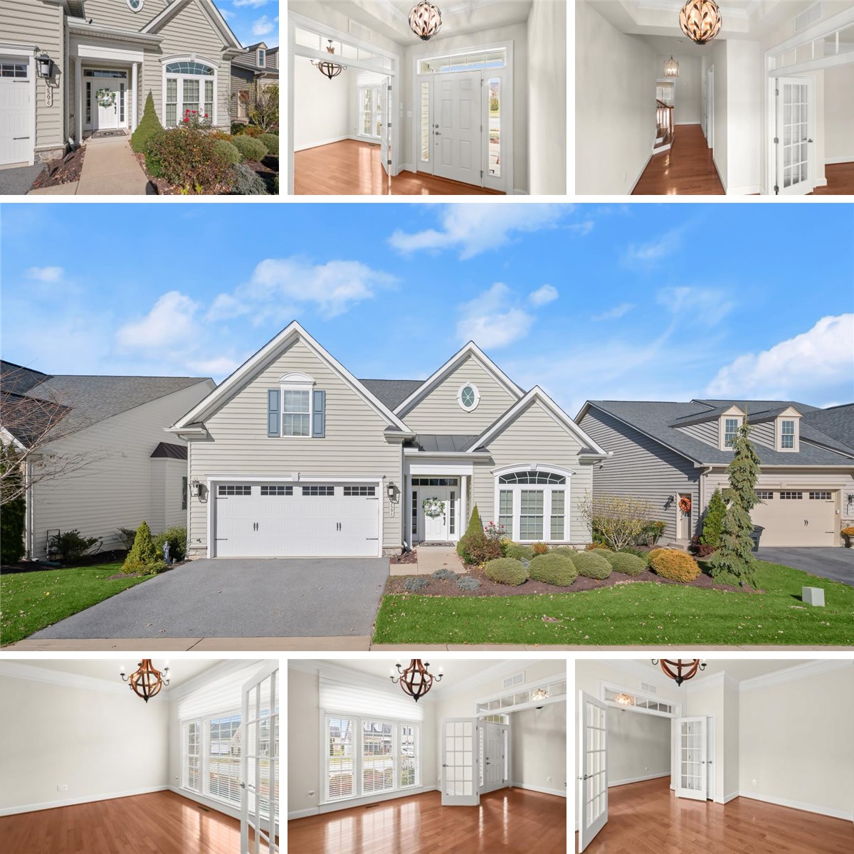 Experience refined luxury in the amenity rich 55+ Waverly Woods West community. This sophisticated and elegant NVHomes Bornquist model has been lovingly maintained by the original owner and offers over 4,000 square ft of exceptional living space with effortless main-level living. Professionally landscaped gardens flank the front entryway, illuminated at night with custom landscape lighting. Inside you are greeted with a tray-ceiling foyer, gleaming hardwood floors, 10' main level ceilings, detailed accent molding and a neutral color palette. The kitchen features an abundance of 42-inch cabinetry, granite countertops, a designer backsplash and an oversized island with breakfast bar, stainless steel appliances and a walk-in pantry. The kitchen blends effortlessly with the open concept dining room and family room highlighted with multiple windows and a cozy gas fireplace. The main level primary suite features a spacious sitting room, a large walk-in closet, a luxurious en-suite bath with dual vanities, a separate makeup vanity and a frameless glass shower with dual shower heads. The main level is completed with two additional bedrooms and a second full bath, and a well appointed laundry room with built-in cabinetry, sink and folding station, and a custom drop zone just off the 2 car garage. Upgraded designer lighting has been added throughout the home, custom windows treatments and remote control electronic blinds in the primary suite. The daylight lower level offers an oversized recreation room, a large finished walk-in closet, ample storage space and rough in for future bath, expanding the home’s versatility. Upper level storage space exists that could provide future additional finished space if desired. The spotless two-car attached garage is upgraded with PebbleTec flooring, adding both durability and style. A home security system, in-wall safe and in-ground lawn irrigation add to the highlights of this home. Community amenities include a clubhouse, fitness center, swimming pool and walking trails. Ideally located near major routes and close to premier shopping, dining, and entertainment options.