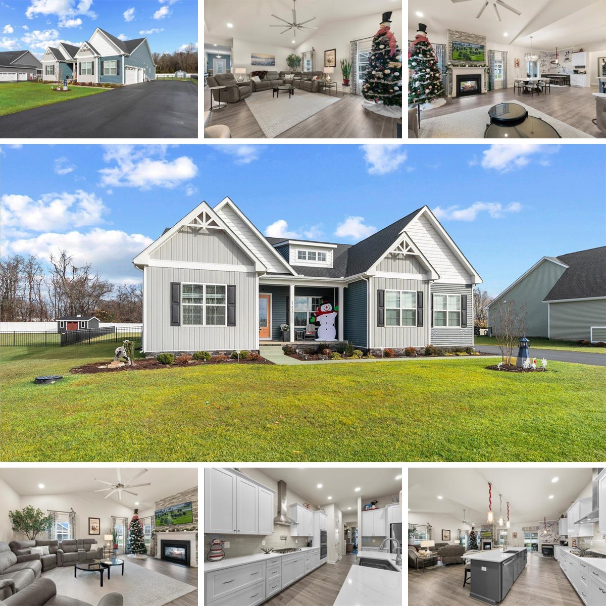 An Exceptional Coastal Retreat Where Every Upgrade Has Been Thoughtfully Curated. No detail was overlooked in this stunning, upgrade-rich coastal residence ideally located just minutes from downtown Milton and the Delaware beaches. From the moment you arrive, this home makes a statement with its charming curb appeal, featuring a welcoming covered front porch and architectural accents that frame the inviting, stone accented façade. Step inside to discover a grand, expansive open floor plan designed for both everyday comfort and elegant entertaining. Luxury LVP flooring flows seamlessly throughout the common areas, complemented by soaring ceilings, wide hallways, and oversized doorways that enhance the home’s light-filled, airy feel. French doors open to a sun-drenched office or study, an ideal space for working from home or quiet retreat. The heart of the home is the exquisitely upgraded kitchen, thoughtfully designed with both beauty and function in mind. Highlights include stainless steel appliances, Corian countertops, a gas cooktop with pot filler, double wall ovens, oversized sink with water filtration system, pendant lighting, and a generous island with seating area. A dedicated coffee station, breakfast nook, pull-out drawers, and a pantry outfitted with custom California Closets® organization elevate this kitchen to a true chef’s showpiece. Open to the kitchen, the impressive family room is anchored by vaulted ceilings and a striking double-sided fieldstone fireplace with a classic mantel, creating a warm and inviting focal point. The adjacent dining area offers a perfect gathering space for hosting family and friends. The private primary suite is a serene retreat, featuring plush carpeting, high ceilings, and an additional bump-out ideal for a reading nook or workspace. The spacious walk-in closet has been fully customized with California Closets® storage systems, while the spa-like en-suite bath boasts an oversized stall shower, heat lamps, and a dual vanity. Two generously sized guest bedrooms are thoughtfully positioned in a separate wing, sharing a beautifully appointed hall bath to ensure comfort and privacy for visitors. A standout feature of the home is the custom-upgraded laundry room, complete with abundant cabinetry, with under cabinet lighting, premium countertops, and a dedicated folding station, both functional and beautifully designed. Outdoor living is equally impressive. An oversized screened porch offers ample space for dining and lounging by the double-sided fireplace and includes a built-in doggy door leading to the fully fenced backyard. Beyond the porch, relax beneath the pavilion equipped with electric and a ceiling fan, perfect for warm coastal evenings. The backyard also features a 12’ x 20’ storage shed with electric, ideal for hobbies or additional storage. Additional upgrades include an oversized two-car garage with a third bay for storage or a golf cart, an expanded extra-long and extra-wide driveway providing abundant off-street parking, and a sealed, conditioned block foundation supporting the entire home, an exceptional feature for comfort, durability, and efficiency. This remarkable home blends luxury, thoughtful upgrades, and coastal charm into one extraordinary offering, an ideal primary residence or refined coastal retreat
