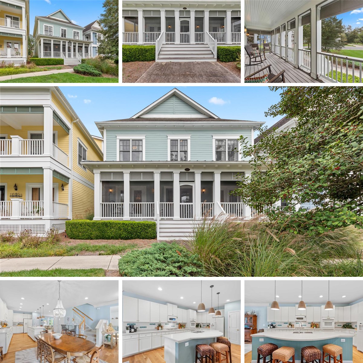 Step inside and discover a thoughtfully designed floor plan that brings people together while offering distinct spaces to relax and unwind. At the heart of the home, the chef-inspired gourmet kitchen delights with an expansive center island with breakfast bar, a suite of stainless steel appliances, abundant custom 42” cabinetry, and generous prep areas designed to inspire every culinary creation. The adjacent family room is anchored by a handsome fireplace flanked by built-ins, creating a warm and inviting atmosphere for gatherings large or small. The kitchen and adjoining dining and living areas open through French doors to the home’s sweeping screened veranda, the ultimate indoor-outdoor living space. From al fresco dining to evening cocktails, this open-air retreat is the perfect extension of the home’s coastal living style. A dedicated home office, powder bath, and mudroom with interior garage access complete the main level, thoughtfully designed for everyday convenience. The primary suite serves as a tranquil retreat, featuring an expansive walk-in closet and a spa-inspired ensuite bath with a soaking tub, dual vanity, a walk-in shower, and private water closet. Two additional guest bedrooms, each with unique character, share a well-appointed hall bath, while a spacious laundry room offers ease and functionality. Upstairs, a bonus living area and an additional bedroom suite with full bath offer the perfect setting for extended guests, multi-generational living, or a private retreat for visiting family and friends. This home’s unique lot design with alley-entry garage preserves its beautiful curb appeal, creating a charming front façade that feels both timeless and inviting.
