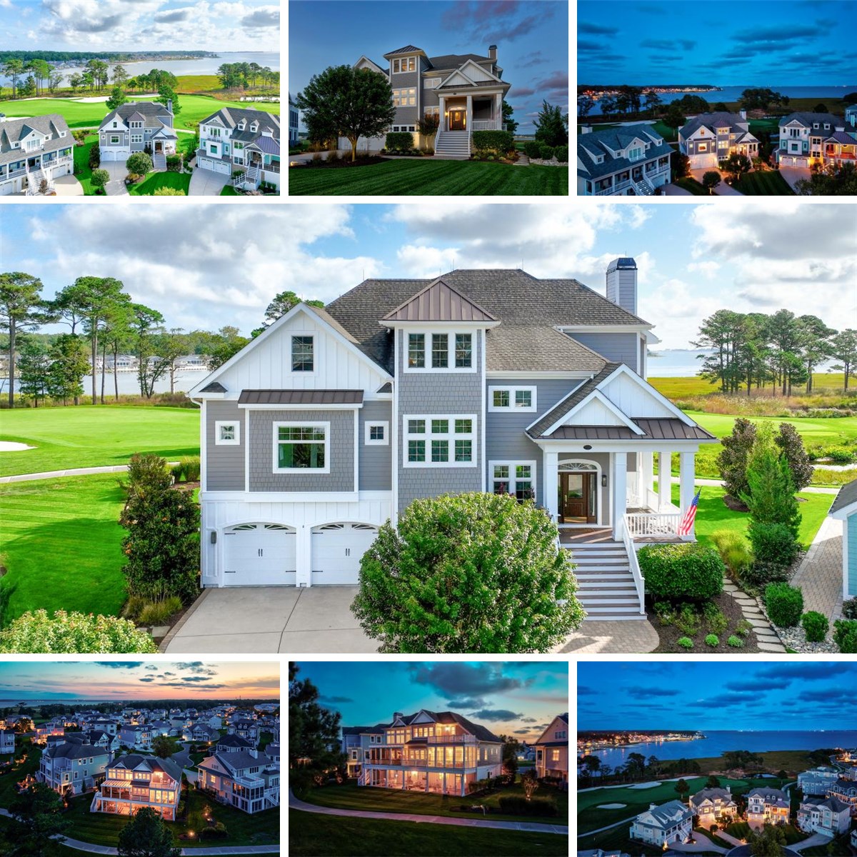 Perched on one of the community’s most coveted lots, the home commands 180-degree vistas of the Indian River Bay, the iconic Inlet Bridge, Lingo Creek, and the signature 8th hole of the Jack Nicklaus golf course. From nearly every room and vantage point, sweeping views unfold, where sunrises dance across the water, bald eagles soar overhead, and the rhythms of boating, kayaking, and paddleboarding animate the horizon. Designed for entertaining, the home offers five outdoor decks, including a spectacular 60-foot screened porch with swings, rockers, chaise lounges, and dining space. A second-level deck with a covered pergola invites alfresco meals, while the third-floor deck is the perfect perch for sunset cocktails with views as far as the eye can see. Inside, an expansive 25’ x 35’ family room, complete with a custom bar, fireplace, and seamless connection to the porch, provides a gathering place equally suited for lively celebrations or quiet evenings by the fire. The great room, formal dining room, and loft offer additional spaces for hosting and relaxation, while the indoor/outdoor Delaware room, with easy-glide vinyl windows, extends the entertainment season throughout most of the year. Every detail of the home has been carefully curated. The interiors are professionally designed with European and Asian influences, blending bespoke wallpapers, custom headboards, and elegant draperies into a cohesive and sophisticated palette. Architectural finishes such as dramatic coffered ceilings, layered crown moldings, judges paneling, and hand-scraped hardwood floors underscore the home’s refinement. Built-in cabinetry, French doors with crystal knobs, custom closets, and exquisite lighting, from sparkling chandeliers to designer pendants, further elevate the interiors. The gourmet kitchen is a chef’s delight, featuring Café Series appliances, ceiling-height cabinetry with glass-front accents and custom lighting, a built-in wine chiller, and stone-tiled backsplash, all arranged with style and functionality in mind. The adjoining dining spaces and server counters ensure seamless entertaining. Retreat to the luxurious primary suite, where a spa-like bath with a clawfoot slipper tub promises indulgence. The 3-seasons room extends the suite with a serene retreat framed by water views. Additional bedrooms, each with custom closets and elegant design, offer comfort for guests and family alike. Beyond beauty, the home is meticulously maintained and enhanced with thoughtful upgrades, including Anderson windows and doors, a custom elevator, extensive recessed lighting, whole-home music with ceiling speakers, two fireplaces with striking mantels, a security system, and abundant storage. The homes interiors and exterior have been freshly painted in 2025. Outdoor spaces are equally refined, with professional landscaping by a renowned architect, bluestone garden pathways, custom stonework, up-lighting, and shaded porches that invite relaxation. Even the garage has been upgraded with a four-foot extension, epoxy flooring, and climate-controlled storage. For the golf enthusiast, Reserve Golf Membership is eligible to be transferred with purchase of the home.