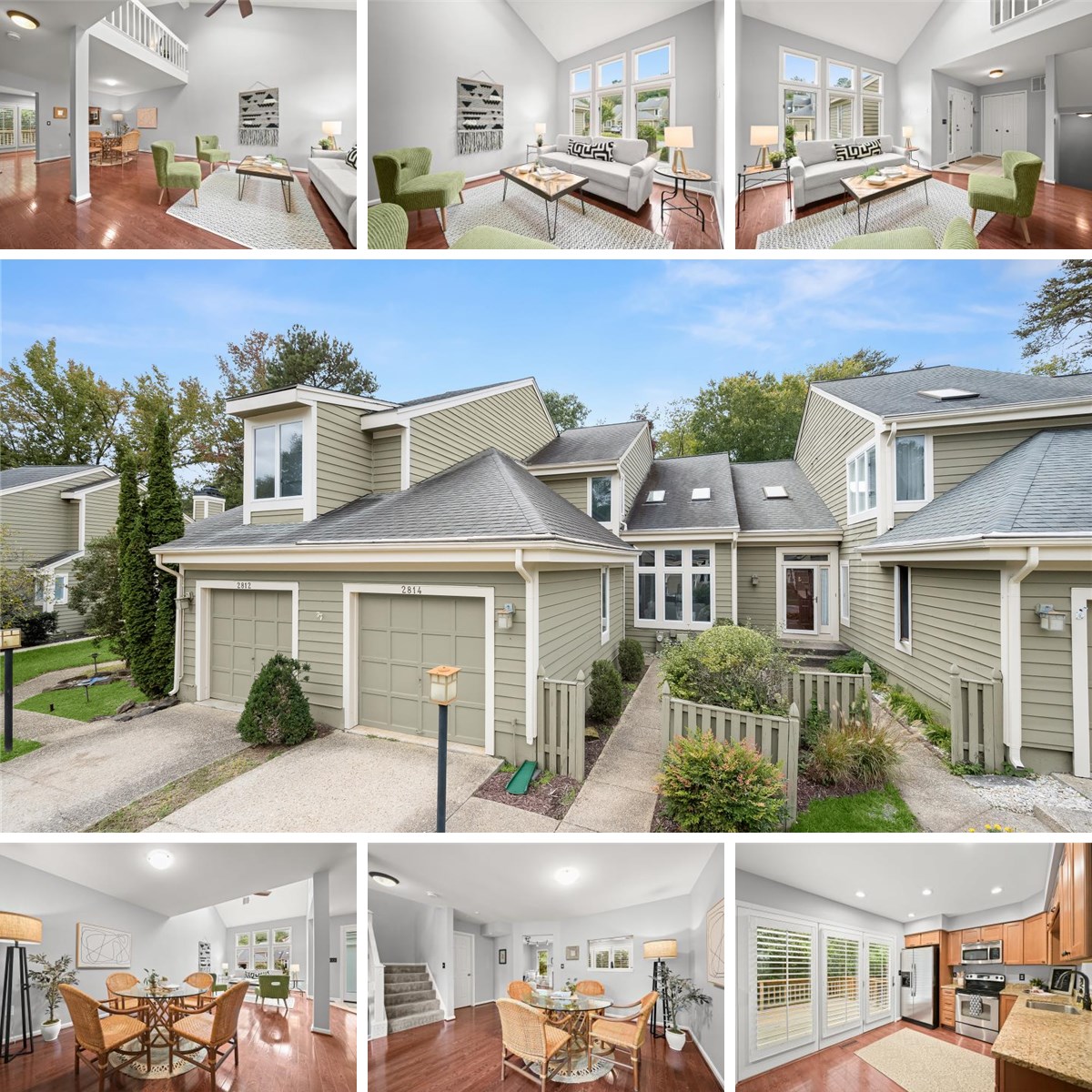 Tucked within the desirable Riva Trace community, this light-filled townhome offers a perfect blend of comfort, privacy, and convenience. Set on a no-thru street and backing to mature trees, it provides a serene, tucked-away feel while being just minutes from shopping, major routes, and historic downtown Annapolis. Step inside to an inviting open-concept living and dining room combination, where high ceilings, skylights, and nearly floor-to-ceiling windows fill the space with natural light. The vaulted living area creates a sense of airiness, while the spacious dining area seamlessly connects to the kitchen through a convenient pass-through window. Warm hardwood floors span the main level, complementing the home’s light, neutral palette. The kitchen is well appointed with granite counters, stainless steel appliances, and access to the expansive deck through a three-panel atrium door with custom interior shutters that bathe the space in sunshine. Adjacent to the kitchen, the cozy family room features a fireplace and a tranquil view of the surrounding trees, creating a perfect spot for everyday relaxation.