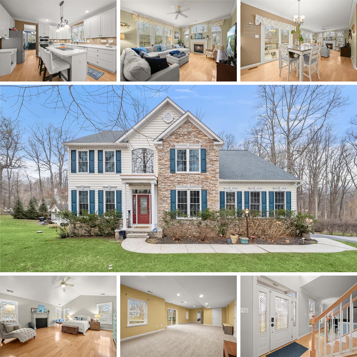 Lovingly maintained and beautifully situated in a peaceful, wooded neighborhood, this exceptional home offers privacy, natural beauty, and a thoughtfully designed layout ideal for both everyday living and entertaining. Nestled among mature trees within the David Force National Resource Area, the property provides a tranquil retreat while remaining conveniently located for commuters. A bright two-story foyer welcomes you into the home, leading to an open and functional kitchen featuring a cooktop, wall oven, microwave, 42-inch cabinetry, center island, and pantry. The kitchen opens to a step-down, expanded family room highlighted by a propane gas fireplace with mantel and an impressive wall of windows that fills the space with natural light. Hardwood flooring enhances both the main and upper levels, with worn areas scheduled to be refinished prior to settlement. Main-level laundry adds everyday convenience. Formal living and dining rooms offer elegant spaces for gatherings, with large windows and a charming bay window in the dining room. A dedicated home office on the main level, accessed through French doors with glass inserts, provides a quiet and light-filled workspace. From the kitchen’s eat-in area, sliding doors lead to a deck, flagstone patio, and walkway overlooking the serene wooded landscape, perfect for enjoying outdoor living in a natural setting. Upstairs, an open landing leads to three generously sized bedrooms and a hall bathroom with dual vanities. The expansive primary suite features two walk-in closets and a luxurious en-suite bath with dual vanities, a soaking tub ideal for relaxation, and an additional linen closet. The fully finished lower level extends the living space with a large recreation area, full bathroom, exercise room with Pergo flooring and mirrored walls, and abundant storage in three separate enclosed areas. Walk-out sliders open to a stone patio and decorative dry creek riverbed. An additional spacious room currently serves as guest accommodations, offering excellent flexibility. Additional features include a storage shed with a newer roof, originally designed as a playhouse with carpeted floors and painted drywall, and a fully installed and operational invisible fence encompassing the property. Major updates include a new roof (2024), water heater (2024), replacement windows (2021), and dual HVAC systems installed in 2018. Ideally located near Route 40, I-70, and US-29, this home offers the perfect balance of commuter convenience and peaceful surroundings. Tucked away at the end of the lane, this is a rare opportunity to enjoy a serene setting without sacrificing accessibility.