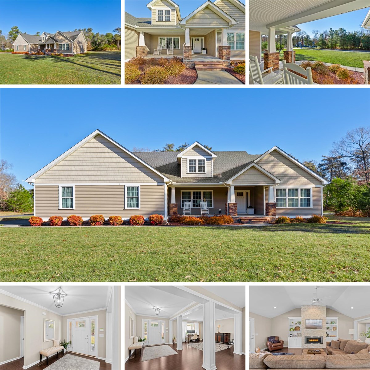 Set on a beautifully landscaped one-acre homesite in Laurel, Delaware, this exquisite custom Craftsman-style residence offers refined living enhanced by thoughtful architectural details and exceptional craftsmanship throughout. A welcoming covered front porch invites you inside, where a spacious entry foyer provides an immediate glimpse to the home’s elegant living spaces, setting the tone for the quality and design found within. The open floor plan is both inviting and functional, anchored by a stunning family room with soaring vaulted ceilings, a dramatic floor-to-ceiling stone fireplace wall, and custom built-in bookcases that create a warm and sophisticated focal point. Just off the foyer, a flexible living space offers endless possibilities as a sitting room, home office, or formal dining area. The gourmet kitchen is designed to impress, featuring a large center island with breakfast bar seating, statement pendant lighting, stainless steel appliances, and 42-inch cabinetry. An intimate dining area framed by a large picture window provides a bright, welcoming space for everyday meals and entertaining alike. The owner’s suite is thoughtfully positioned in its own private wing, creating a serene retreat. The spacious primary bedroom features a cozy gas fireplace, a walk-in closet with custom organization, and a luxurious en-suite bath complete with a double vanity, oversized walk-in shower, and a resort like soaking tub set beneath a window and chandelier. A convenient combination mudroom and laundry room is conveniently located near the primary bedroom . Two additional light-filled guest bedrooms are situated on the opposite side of the home and are served by a beautifully appointed hall bath, offering privacy and comfort for family or guests. Outdoor living is equally impressive, with a covered rear porch featuring vaulted ceilings and a ceiling fan, along with an adjacent patio ideal for grilling or gathering around a fire pit. An oversized side-entry two-car garage provides ample storage and includes a walk-up attic with exceptional storage potential. Additional highlights include recessed lighting and ceiling fans throughout, warm laminate plank flooring, geothermal heating and air conditioning, a whole-house water treatment system, and an encapsulated crawl space with moisture control. Peacefully tucked away yet just minutes from the Phillips Landing public boat ramp, this remarkable home offers a rare combination of luxury, efficiency, and tranquil living in a prime location.