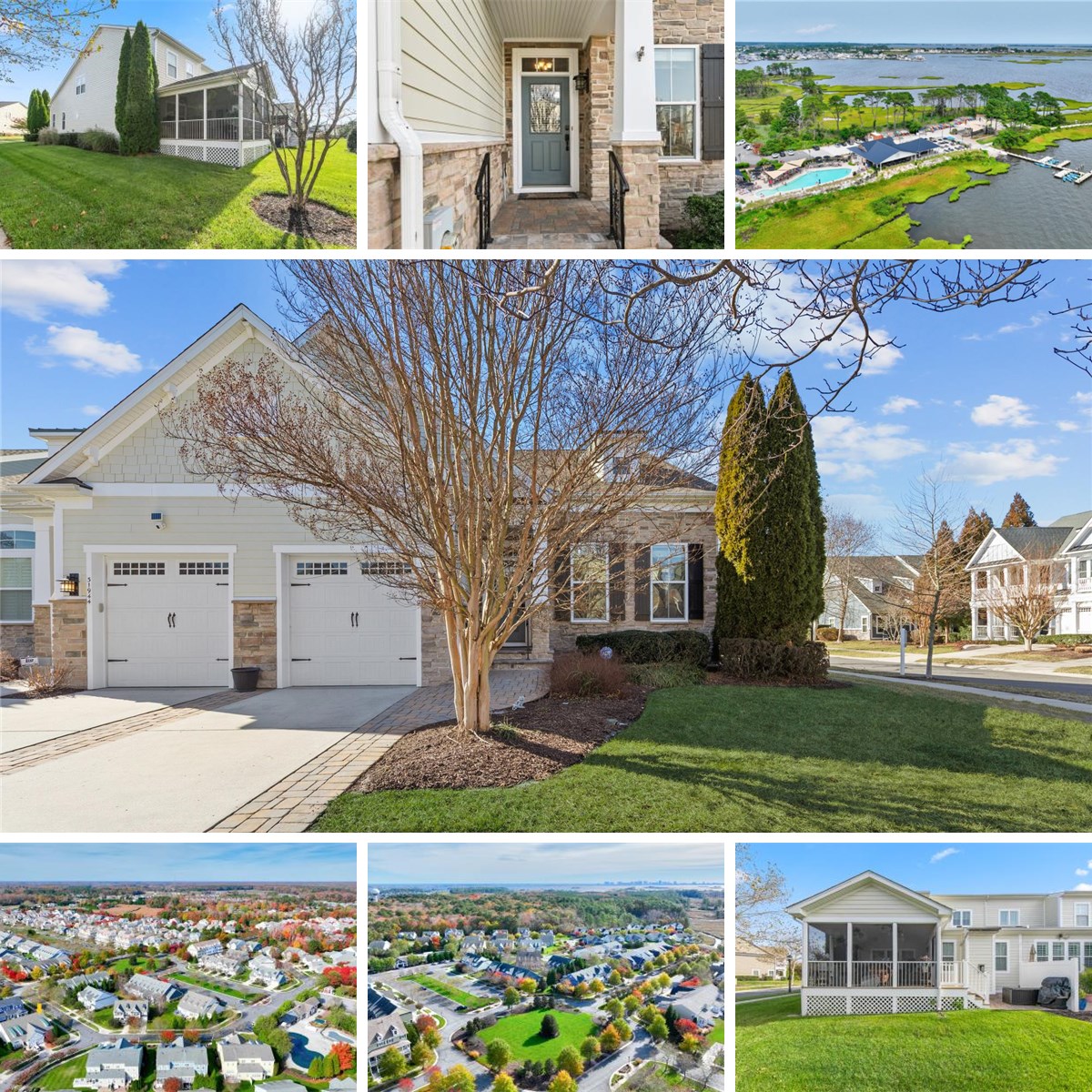 Location ! Location !! Welcome to a lovely coastal Severn villa boasting 2800 sq ft, 4 Bdrms, 2 1/2 baths, located in the highly desirable Commons neighborhood (the Sweet Spot of Bayside) Perfectly positioned on a desirable corner lot and just moments from the Commons neighborhood community pool, pool parking, mailboxes, book exchange nook, summer beach shuttle stop, enjoy open green space park like areas, tree lined streets, and a community garden - this home offers both convenience and an exceptional coastal lifestyle. From the moment you step inside, the inviting living room makes a striking impression with its two-story vaulted ceiling, creating an open and airy atmosphere filled with natural light. Rich hardwood flooring flows throughout the main living areas, complemented by high ceilings, detailed crown molding, and elegant wainscoting that add warmth and character. The dining room is beautifully appointed with deep crown molding and wainscoting, making it an ideal space for hosting special occasions and memorable gatherings. The kitchen is thoughtfully designed for both everyday living and entertaining, featuring elegant granite countertops, a center island perfect for casual meals, additional table space, and a pantry for storage. Culinary highlights include double wall ovens, a French-door stainless steel refrigerator, a five-burner gas cooktop, a stylish backsplash, and a tray ceiling that adds architectural interest. The living space flows seamlessly into a bright and welcoming sunroom with a cozy gas fireplace, creating a perfect spot to relax year-round. An atrium door from the Sunroom leads to a spacious screened-in porch with direct access to the paver patio, ideal for enjoying coastal breezes and outdoor dining. The main-level primary suite offers a peaceful retreat, complete with a tray ceiling, walk-in closet, and an en suite bath featuring dual-sink vanities, a soaking tub, and a separate stall shower. Upstairs, a generous loft serves as a central hub to three additional bedrooms, 1 storage room and a full bath, providing ample space for guests or family. Enjoy the Bayside lifestyle - an unmatched array of amenities, Bayside is also home to the coveted Jack Nicklaus Golf Course , Signatures Restaurant, 38 Degrees at The Point, enjoy water access for kayaking, both indoor and outdoor swimming pools, a community fitness center, variety of water aerobics, exercise classes, and vibrant lifestyle Bayside Institute classes, tennis, pickleball, basketball and an entertainment scene at the Freeman Arts Pavilion Stage with ongoing concerts and events. With everything you need just minutes from the warm sands of both Delaware and Maryland beaches, this coastal villa is more than just a home, it’s an opportunity to embrace the beauty, energy, and exceptional lifestyle that Bayside has to offer. Bayside is located only 4 miles to Fenwick Island & Ocean City For More information on the Sports and Golf Memberships, contact Julia Harman.