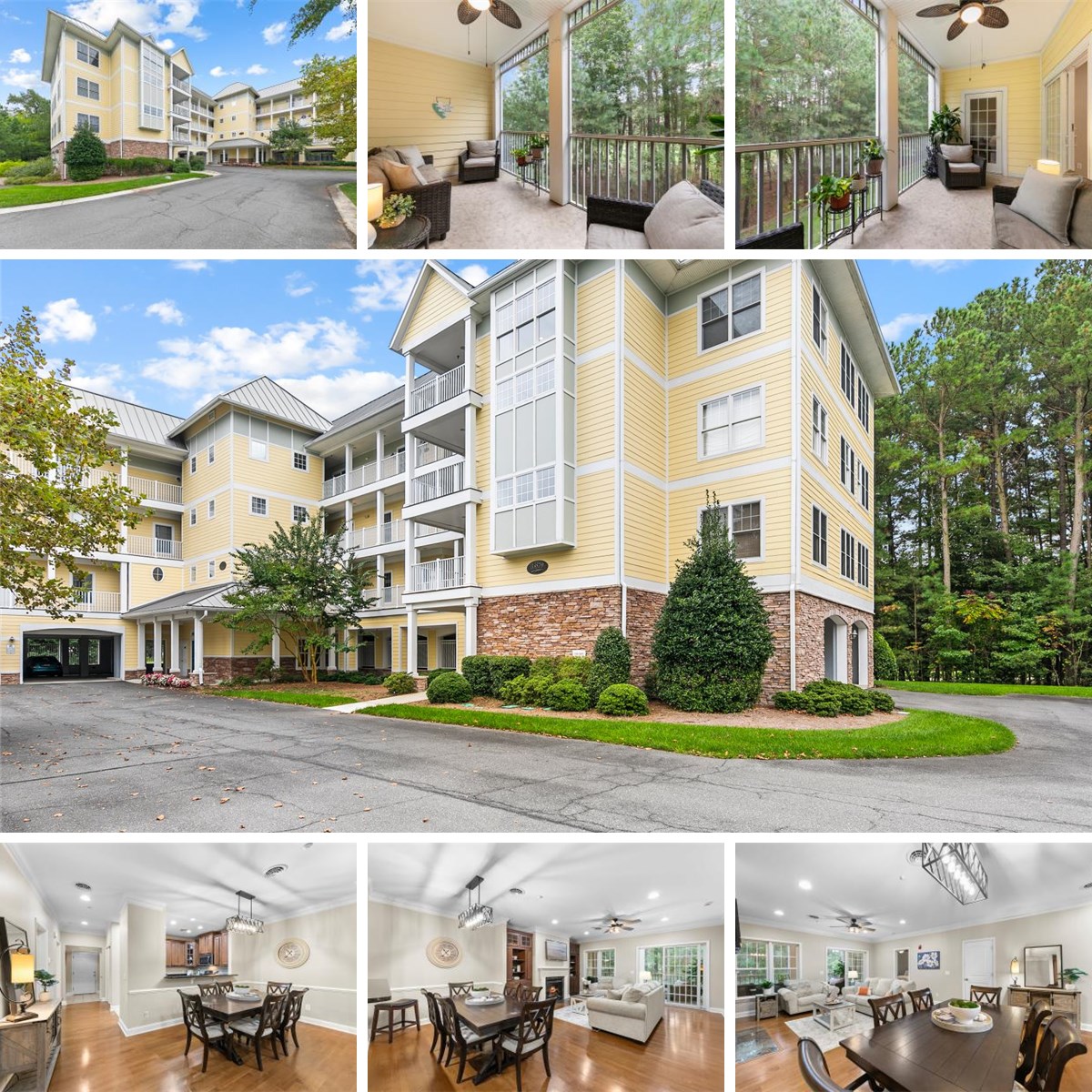 Beautifully upgraded and freshly painted 2-bedroom condo featuring durable hardwood laminate floors, a modern kitchen with granite countertops and stainless-steel appliances, a cozy gas fireplace with built-in cabinetry, and elegant crown molding. Both bedrooms are master suites with private ensuite baths, offering comfort and privacy. Enjoy convenient living and a serene, screened porch overlooking a private woodland setting.