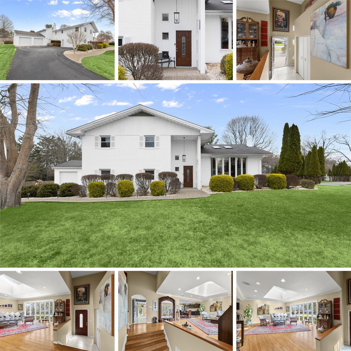 Presenting this exceptional one-of-a-kind home in the sought-after Long Meadow Estates in Pikesville, offering five bedrooms and three full bathrooms, spread across four levels. Multiple thoughtful additions over the years have expanded this sprawling residence, creating a home that truly feels custom built. Set on a level half-acre corner lot, this home has generous space for everyone both inside and out. Step inside to discover an abundance of natural light, beginning in the inviting front living room with a sun-filled bay window and a vaulted ceiling with skylights. Rich hardwood floors, crown molding, and recessed lighting continue into the dining room, providing a comfortable setting for gatherings of any size. Prepare your favorite meals in the eat-in kitchen, complete with a center island with seating, ample cabinets for storage, and appliances including a Bosch dishwasher and refrigerator/freezer, a JennAir gas cooktop, and double wall ovens. Just beyond, the sunroom addition boasts a soaring cathedral ceiling with skylights, oversized windows, and a wood-burning fireplace. Designed for year-round enjoyment, it offers a relaxing space with direct access to the patio and backyard. The upper level hosts the primary suite, complete with a separate sitting room with three closets, a spacious bedroom with a walk-in closet, and a well-appointed ensuite bathroom featuring a walk-in shower, jetted tub, and dual-sink vanity. Completing the upper level are the second and third bedrooms, along with a hall bathroom. The finished lower level has two additional bedrooms and a third full bathroom with a walk-in shower. A comfortable family room with a cozy wood-burning fireplace and sliding glass doors outside provides additional living space, while a versatile den with a wet bar and garage access is ideal for an office or potential bedroom. The basement level offers laundry, extensive storage including two walk-in closets, and flexible space for a gym or hobbies. Outside, the backyard is designed for both relaxation and entertaining, featuring a paver stone patio with a convenient gas line hookup for a grill. Recent updates within the last few years include a new gas furnace (2025), gas water heater (2021), most of the kitchen appliances, sunroom skylights and windows, driveway resurfacing and more. Additional highlights include a generator, electric vehicle charger, zoned heating and cooling systems.