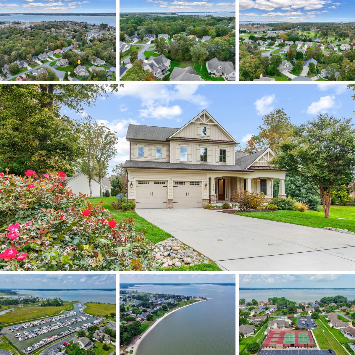 Nestled on a quiet cul-de-sac in the sought-after waterfront community of Bay Colony, this exceptional home blends coastal elegance with thoughtful design and premium upgrades. Freshly painted inside and out with refreshed landscaping, the home makes a striking first impression with its architectural peaks, board-and-batten shutters, and covered front porch framed by craftsman pillars. A rich wood-like entry door with glass side panels welcomes you into an interior defined by soaring ceilings, crown molding, and plantation shutters that fill the space with natural light. The grand living room impresses with a dramatic 26-foot ceiling, engineered hardwood flooring, and a cozy gas fireplace—perfect for gathering or relaxing. The gourmet kitchen is a chef’s dream, featuring a large granite-topped island, stylish pendant lighting, and GE Profile stainless appliances including double wall ovens and a five-burner gas cooktop. 42-inch soft-close cabinetry, under-cabinet lighting, pull-out drawers, and a walk-in pantry ensure exceptional function and storage. The main-level primary suite offers a peaceful retreat with a tray ceiling, expansive walk-in closet with an adjoining bonus room, and a spa-inspired bath with deep soaking tub, oversized shower, dual vanities, and private water closet. A front guest bedroom completes the first floor, while upstairs, two additional bedrooms (one en suite), a spacious loft, and a versatile flex room provide plenty of room for family and guests. Practical luxury continues throughout with an oversized two-bay garage featuring Pinnacle flooring, ceiling storage racks, and side access; a conditioned crawl space with dehumidifier; irrigation system with private well; central vacuum; tankless water heater; and a leaf-filter gutter system. The mudroom and laundry room offer thoughtful touches like built-ins, hooks, and a utility sink with Energy Star Samsung washer and dryer. Step outside to the covered composite deck and lower paver patio—ideal spaces for outdoor entertaining and relaxation. Bay Colony residents enjoy a gated marina with floating docks, boat ramp, and restrooms; a private beach; clubhouse; pool; tennis courts; and easy access to the Indian River Bay—just a short boat ride to Paradise Grill, Rehoboth, Dewey, Lewes, or Ocean City. Experience refined coastal living at its best—where luxury, lifestyle, and location meet.