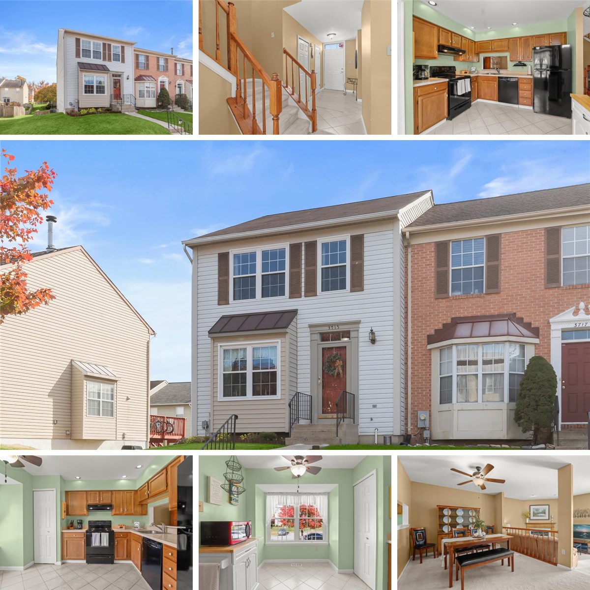 Welcome home to this charming three bedroom, two-and-a-half-bathroom end-unit townhome in the sought-after Ridgely’s Choice neighborhood. Step inside to find an abundance of natural light throughout. The eat-in kitchen offers a pantry and space for a breakfast table, while the open-concept dining and living rooms provide plenty of room to entertain or relax. A wood-burning fireplace adds a cozy touch to the living room, which opens to the back deck complete with a retractable awning. A half bathroom and coat closet complete the main level. Upstairs, the primary bedroom features two closets and a private bathroom, accompanied by two additional bedrooms and a shared full hall bathroom. The finished lower level expands the living space with a large recreation room and walkout access to the fully fenced backyard. The utility room offers additional storage and includes laundry. Ideally located close to shopping, dining, and major commuter routes, this home combines comfort and convenience in a desirable community.