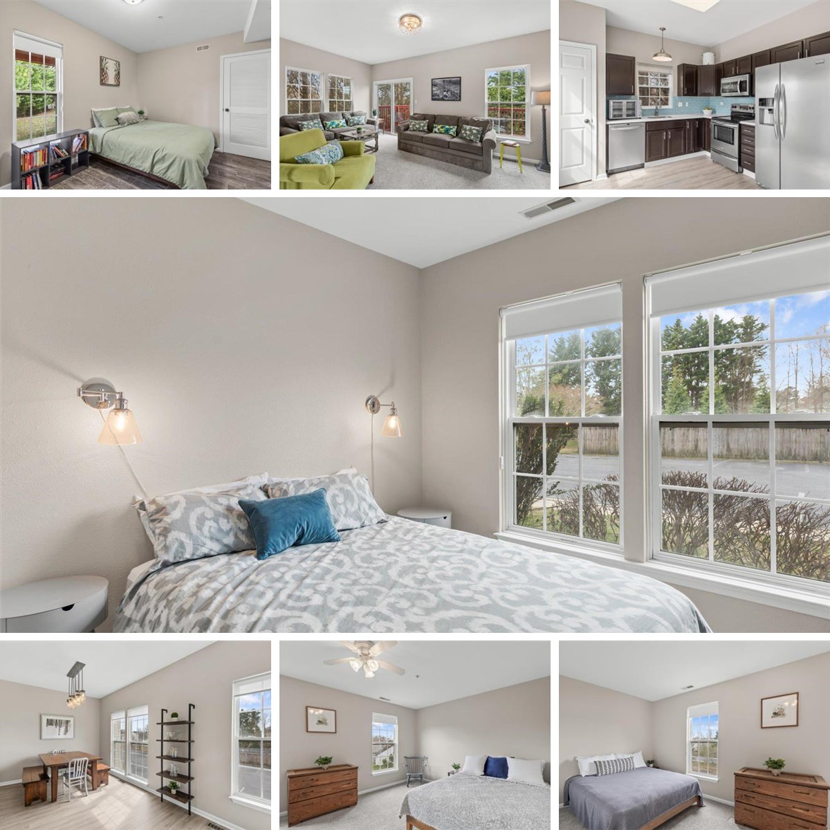The kitchen opens effortlessly into the living room, where a wall of atrium doors fills the space with light and leads to the screened-in porch. This inviting outdoor area offers the perfect place to relax and unwind while enjoying the fresh air in comfort. The living room also includes a TV, adding convenience for move-in-ready enjoyment.