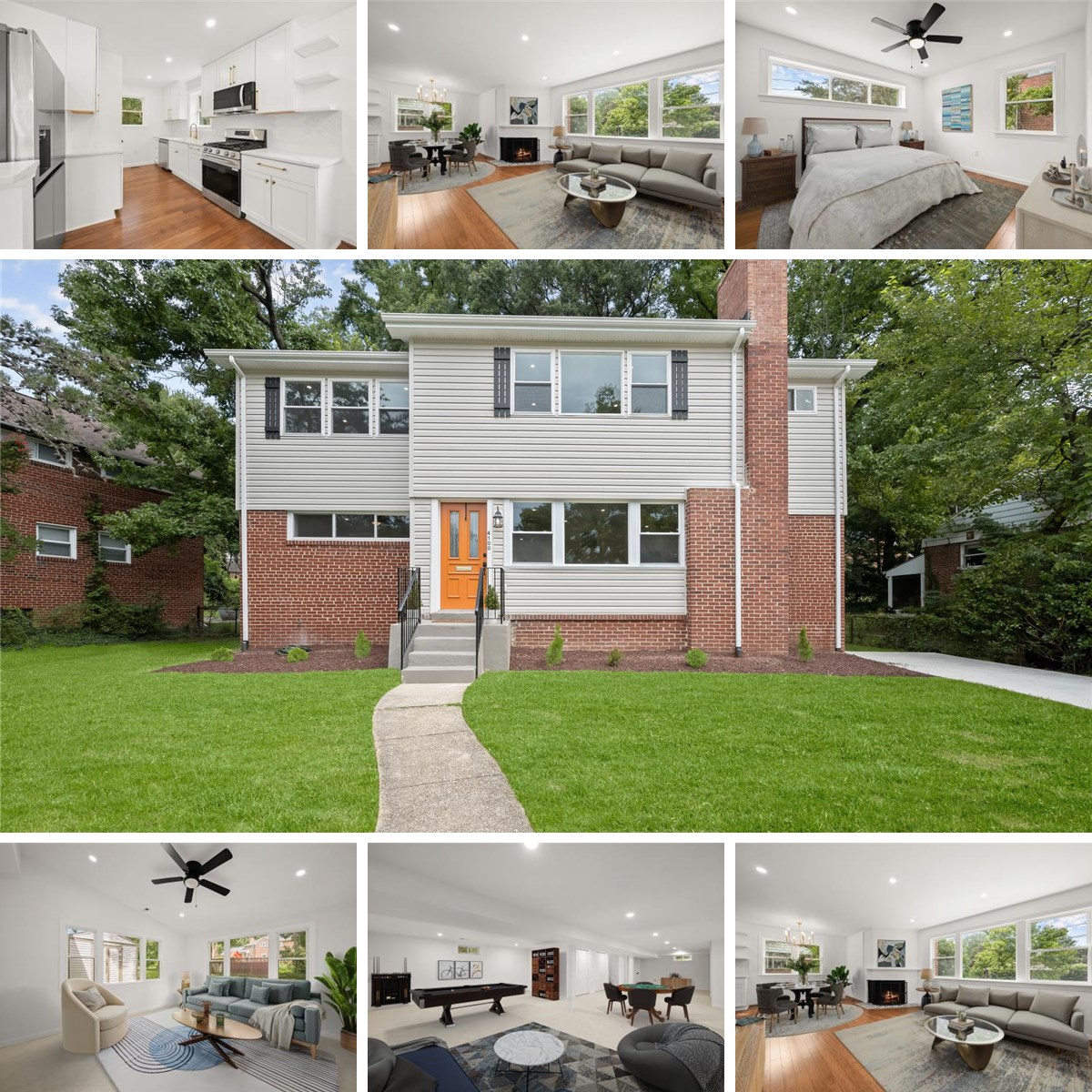Striking curb appeal welcomes you, hinting at the impeccable design found within. Step through the front door into an airy, open-concept main level, where warm hardwood floors and recessed lighting flow throughout expansive living, dining, and kitchen spaces. A picture window in the living room fills the space with natural light and beautifully illuminates the wood-burning fireplace with its white brick surround. The adjacent dining room flows effortlessly into the kitchen, where no detail was spared, from soft-close white 42-inch cabinetry and quartz countertops to a tile backsplash and sleek stainless steel appliances, including a gas range. Brass and black hardware add a sophisticated edge throughout the home, complementing the curated, design-inspired finishes. The main level also includes a luxurious primary suite featuring a spacious walk-in closet and a spa-like en suite bath with a double vanity and a glass-enclosed wet room that combines a rainfall shower and soaking tub for ultimate relaxation. Upstairs, four sizable bedrooms include a second primary suite complete with three closets and a stylish attached bath with a dual-sink vanity. A full hall bath and a cozy loft area, perfect for a desk or reading nook, round out the upper level. Just a few steps down from the kitchen, a large family room addition offers a vaulted ceiling, electric fireplace, and access to the side yard, making it an ideal space to unwind or entertain. The finished lower level expands the living space with a sprawling recreation room, an additional full bath, a large laundry room, and a walk-in storage room, providing abundant functionality for modern lifestyles. Out back, the fully fenced yard is both private and practical, complete with a storage shed and plenty of room to garden, play, or host gatherings. A generous driveway allows parking for multiple vehicles. Every major system has been updated for peace of mind: roof, water heater, appliances, windows, and dual-zone HVAC were all replaced in 2024. Enjoy the best of small-town charm and city convenience just steps from the neighborhood park, playground, EV charging station, and all that University Park has to offer. With easy access to two Metro stations, the MARC train, University of Maryland, Trader Joe’s, Riverdale Town Center, and the upcoming Purple Line, this rare find combines history, luxury, and location into one truly exceptional home.
