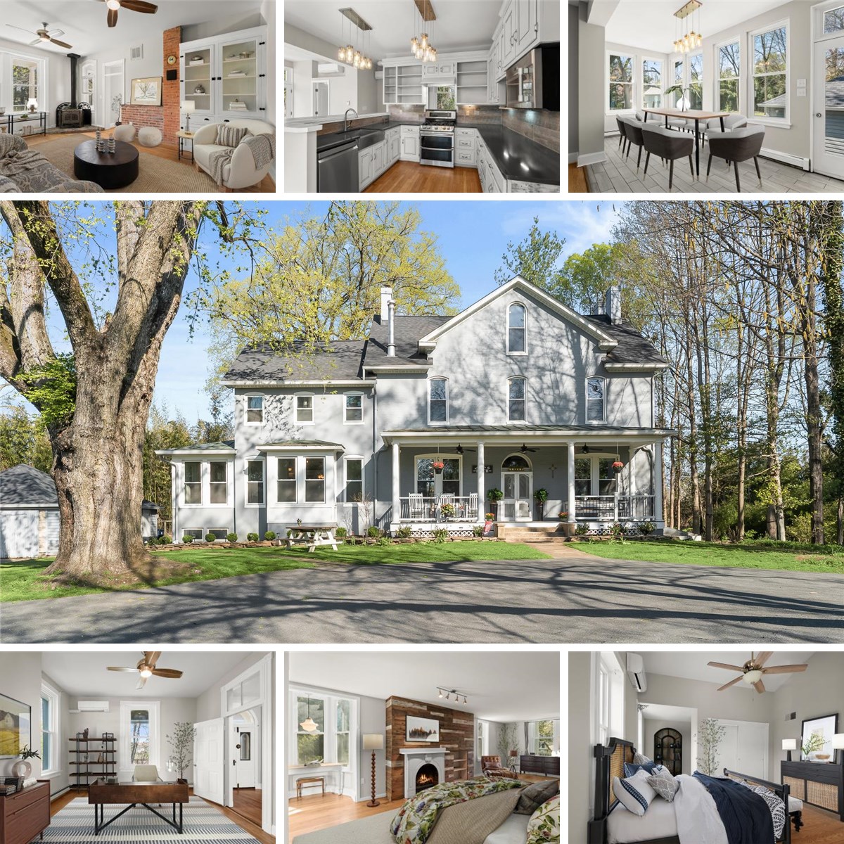 Welcome to 4310 Buckeystown Pike, an incredible estate showcasing a grand all-brick Victorian set behind a gated entrance and framed by mature trees and a sweeping circular drive. Rich in historic charm, this remarkable home blends original architectural details such as the front and rear doors, arched and transom windows, exposed brick walls, soaring ceilings, and hardwood floors with thoughtful updates throughout. A welcoming covered front porch leads into the impressive center hall foyer, where a majestic wood staircase creates a stunning first impression. To the left, the double parlor / living room features built-ins and a woodburning stove and flows seamlessly into a flexible adjoining space ideal for a formal dining room, office, or playroom. The spectacular renovated eat-in kitchen is the heart of the home, appointed with sleek stainless steel appliances, granite countertops, ample cabinetry, exquisite lighting, a breakfast bar, and a breakfast room with porcelain wood-grain tile and direct access to the side yard and detached garage. A back staircase and powder room complete this side of the home, while to the right of the foyer you will find a charming en-suite bedroom with its own decorative fireplace.