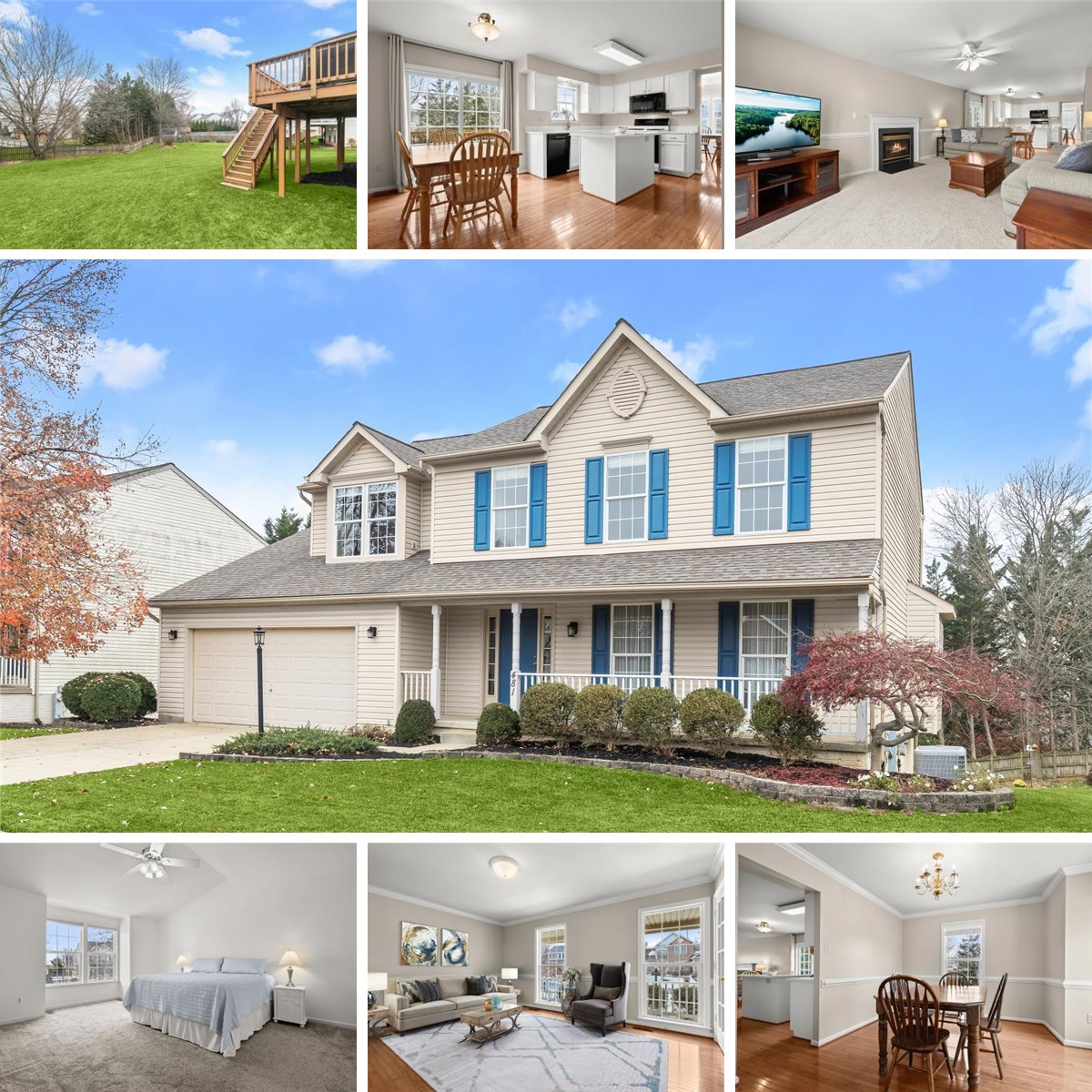 Lovingly maintained and beautifully appointed, this classic Colonial is perfectly positioned on a premium lot and boasts updates throughout including the roof, renovated kitchen and bathrooms, hardwood flooring, deck addition, fresh paint, whole house humidifier, and more! A welcoming covered front porch leads to the foyer, where hardwood flooring and a bright, flowing floor plan set the tone. The formal living and dining rooms feature elegant accent molding, creating inviting spaces for gatherings and everyday living. The chef’s kitchen impresses with stunning quartz countertops, crisp white cabinetry, a new stainless refrigerator, and a sun-filled breakfast area with access to the expansive deck, ideal for outdoor dining and entertaining. Just off the kitchen, the comfortable family room centers around a cozy gas fireplace. Upstairs, the spacious primary suite boasts a soaring vaulted ceiling, a walk-in closet, and a luxurious en suite bath complete with a soaking tub, separate shower, and dual vanity. All bedrooms offer walk-in closets for exceptional storage. A second bedroom connects to a third bedroom through French doors, providing flexibility for a nursery, office, or sitting room. A fourth bedroom and full bath complete the upper level. The large walk-out lower level is ready for your personal touch, featuring a bath rough-in and sliding door access to the backyard. A two-car garage with additional storage adds convenience. Ideally located with easy access to major commuter routes. Charming Historic Sykesville offers an array of boutique shopping, dining, and entertainment options, while nearby Piney Run Park and its scenic lake provide abundant opportunities for outdoor recreation and leisure. This exceptional home offers comfort, space, and timeless appeal.