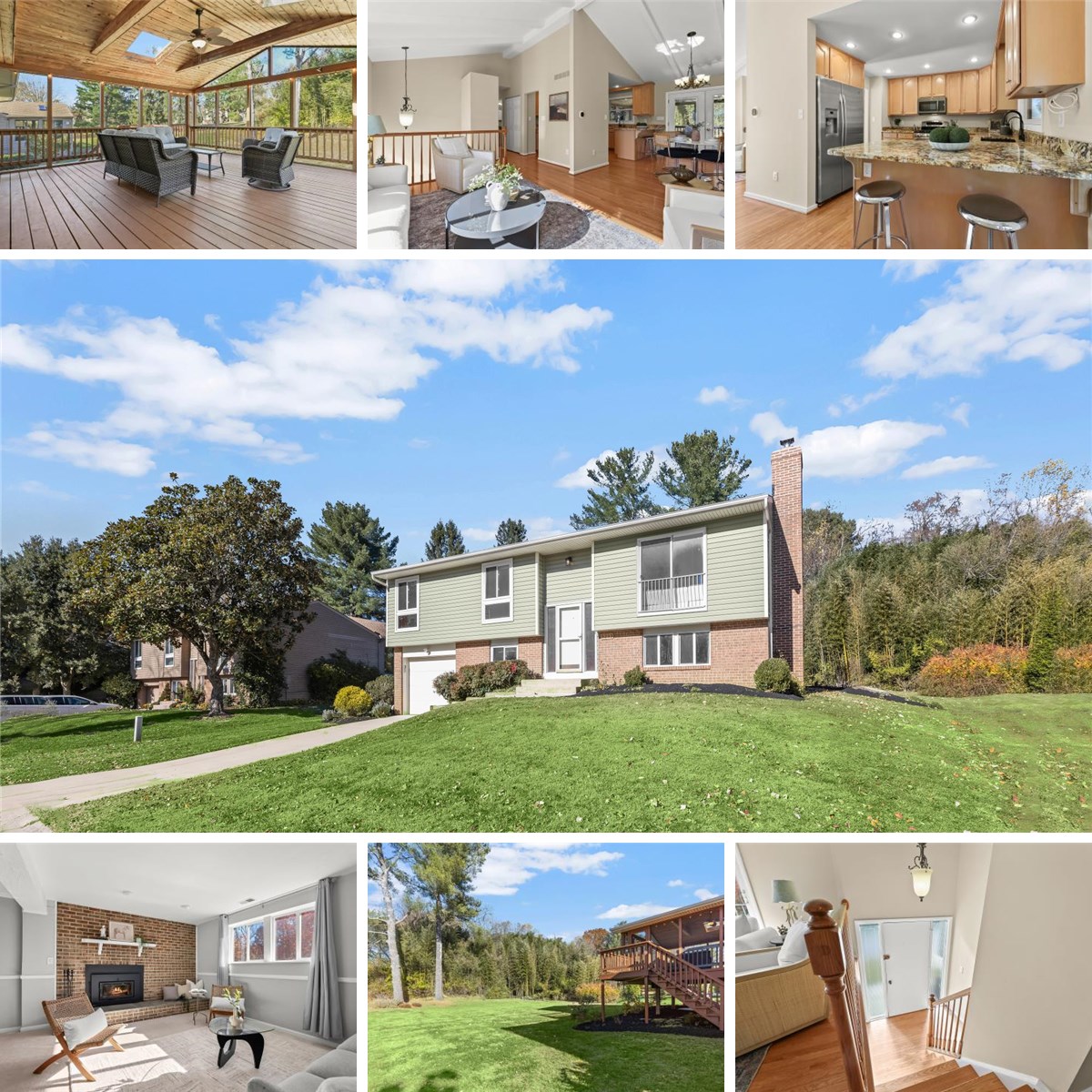 Beautifully updated and meticulously maintained split-level home featuring a bright, open-concept main level with soaring vaulted ceilings and hardwood flooring. The spacious living and dining areas flow seamlessly to a huge screened porch with a stunning wood cathedral ceiling and skylights, perfect for relaxing or entertaining. The kitchen offers granite countertops, light wood cabinetry, a peninsula island, and stainless steel appliances. Wood floors continue throughout the main level and all three bedrooms, including the primary suite with an updated full bath. Two additional bedrooms and a stylishly updated hall bath complete the upper level. The lower level provides a fourth bedroom, half bath, a large storage/laundry/utility area, and a warm and inviting family room with a brick accent wall surrounding a wood stove, and offers access to the 1-car garage. Recent updates include: roof (5 yrs), HVAC (2 yrs), windows (6 yrs), water heater (9 yrs), fresh paint, and new carpet in the lower level. Additional highlights include a spacious 1-car garage and an ideal location near major commuter routes, shopping, dining, and entertainment. Move-in ready and thoughtfully updated, this home blends comfort, style, and convenience, offering the perfect place to call home.