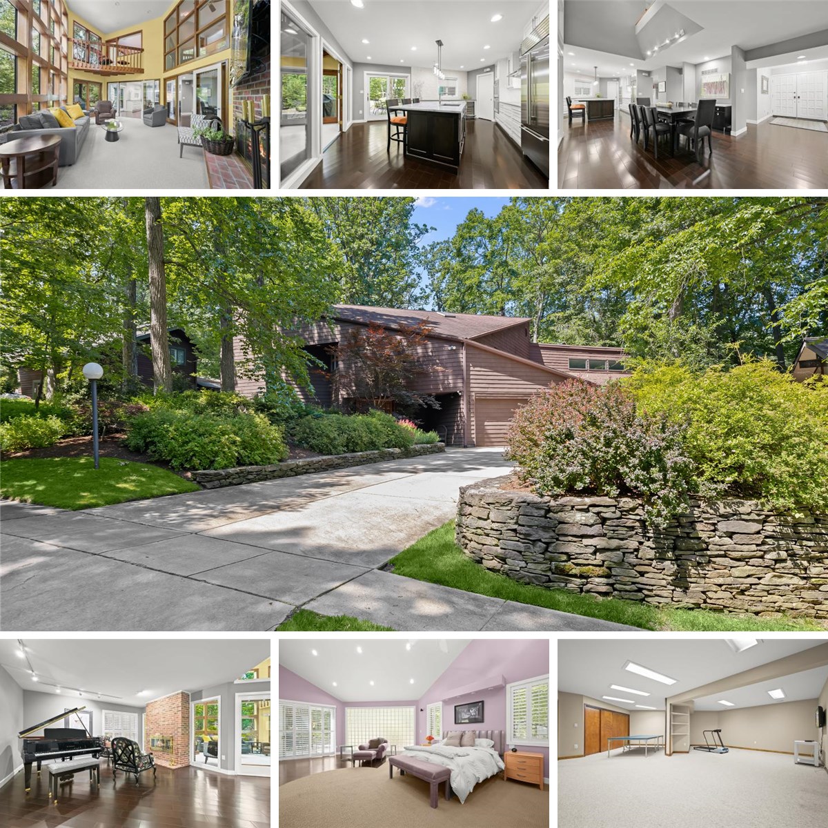 Stunning 6-bedroom, 4.5-bath Craig Stewart build home nestled in the serene, wooded, and highly sought-after Village of Long Reach community. Boasting over 5,000 sq. ft. of living space, this home offers a bright, airy floor plan with soaring vaulted ceilings and walls of windows that flood the interiors with natural light and frame scenic wooded views. Updates include the HVAC, kitchen, powder room, refinished siding, and also equipped with a whole house vacuum system. A bluestone walkway leads to the original waffle double-door entry, opening into a gorgeous open-concept interior with hardwood flooring and design inspired color palette. The living room features a wood-burning see-through fireplace shared with the family room that showcases a 2-story wall of windows offering picturesque views and heated flooring. The dining room flows into the gourmet kitchen, updated with quartz countertops, a natural stone backsplash with a sleek, modern flair, stainless steel appliances that include a Sub-Zero refrigerator and induction cooktop and a dual-entry walk-through pantry and laundry combo, accessible through pocket doors on each side. The main-level primary suite addition showcases a glass tile accent wall, original built-in maple wood workstation, and a luxurious bath with custom maple cabinetry, dual vanity, an oversized shower, and a spacious walk-in closet outfitted with a premium organization system. Upstairs, abundant natural light pours in from the two-story ceiling and overlooks the family room below, and includes a second primary bedroom suite offering a private balcony, a loft sitting area, en suite bath, and walk-in closet. Two additional bedrooms share a dual-entry full bath, and a fourth bedroom completes the level. The finished lower level provides a recreation room, a bedroom, full bath, and ample storage. Outdoors, enjoy an expansive ground-level deck surrounded by mature trees and lush landscaping with an in-ground sprinkler system. 2-car oversized garage and expansive driveway. Perfectly located near major commuter routes, with abundant shopping, dining, and entertainment just minutes away.