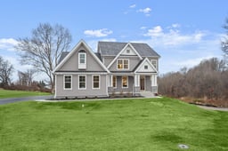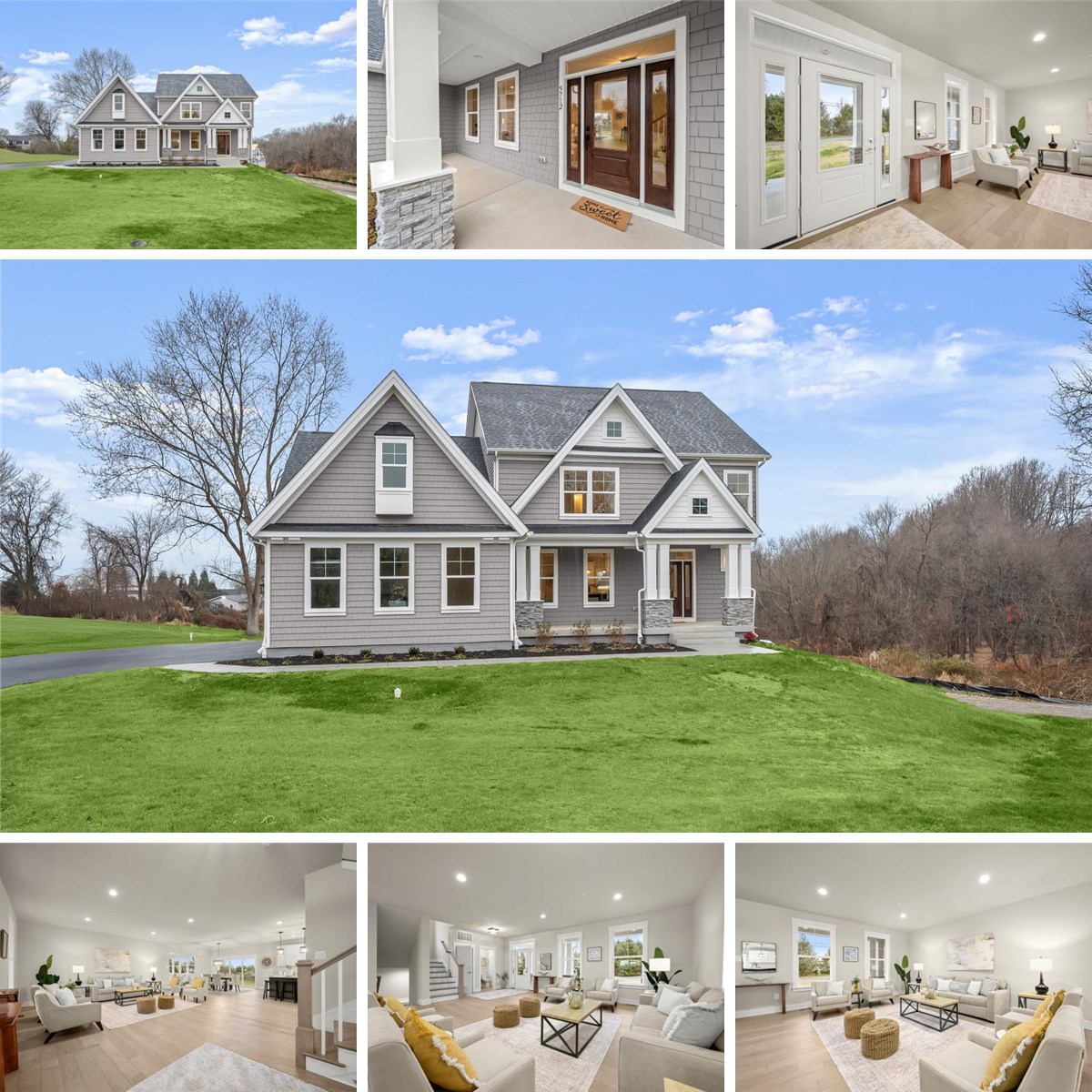 Introducing this exceptional brand new Roosevelt III Farmhouse model by Greenspring Homes set on almost a full acre lot. Offering four bedrooms and two and a half bathrooms, this move-in ready home showcases high-quality finishes throughout. As you arrive, the property greets you with a covered front porch and a two-car garage. Inside, a modern neutral palette, tall ceilings, and abundant natural light create an inviting atmosphere with an open concept main level. The front living room provides a warm welcome, while the dining area is large enough to accommodate any size gathering. Prepare your favorite meals in the gourmet kitchen that is fully equipped with stainless steel appliances, quartz countertops, a tile backsplash, soft-close shaker cabinetry, a center island, and a walk-in pantry. The family room is the perfect spot to relax with an elegant coffered ceiling and a gas fireplace being added. Finishing the main level is a half bathroom, a mudroom with built-in cubbies and access to the garage. Upstairs, the primary bedroom suite awaits, adorned with a tray ceiling with crown molding, and a large walk-in closet. The luxurious ensuite bathroom features a dual-head walk-in shower, double vanity, and separate water closet. Across the hall are the second and third bedrooms and a shared full bathroom. Completing the upper level is the fourth bedroom with two closets, one of which a walk-in, and a laundry room. The unfinished walkup basement awaits your personal vision, offering rough-in plumbing for an additional bathroom and ample space for future rooms. Enjoy exceptional modern living in this brand-new home designed with comfort, style, and functionality in mind.