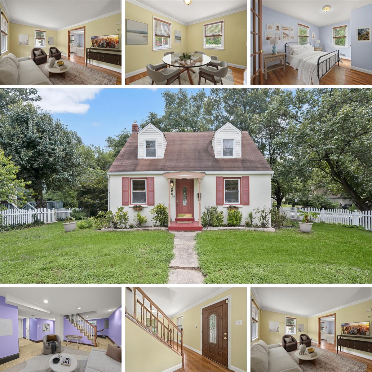 Nestled in the heart of the charming Riverdale Park community, this classic Cape Cod offers character, space, and a location that brings everyday convenience within easy reach. Set on a corner lot and framed by a fully fenced yard with a white picket fence, the home exudes warmth and curb appeal from the moment you arrive. Inside, hardwood floors flow throughout the main and upper levels, creating a timeless foundation for every room. A welcoming foyer opens to the living and dining rooms on either side, both featuring elegant crown molding and abundant natural light. The kitchen is well-appointed with 42 inch cabinetry, granite countertops, stainless steel appliances, and a convenient side door for easy outdoor access. The main level also offers a bedroom with its own private en suite bath, making it an ideal option for the primary bedroom with added accessibility and comfort. Upstairs, two additional bedrooms share a full bath with a sleek tiled tub and shower surround, combining classic charm with modern finishes. The lower level adds even more versatility, with a spacious recreation room, a third full bath, laundry area, and walkout stairs leading to the backyard. Outside, enjoy the back patio, gazebo, and two storage sheds, perfect for outdoor entertaining, relaxing weekends, or additional storage.