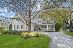 A spacious covered front porch welcomes you inside to a grand two-story foyer accented by wainscoting and a gracefully turned staircase. To the right, the formal living room sets the tone for gatherings, while the adjoining formal dining room features crown molding and a built-in corner cabinet, adding both character and functionality. The dining room leads seamlessly into a bright and inviting kitchen outfitted with white cabinetry, granite countertops, stainless steel appliances including a gas range, a pantry, and a cheerful breakfast area bathed in natural light. Just beyond, the family room serves as the heart of the home, featuring a cozy fireplace, built-in bookcases flanking an oversized sliding glass door, and a convenient wet bar that enhances the space for entertaining.