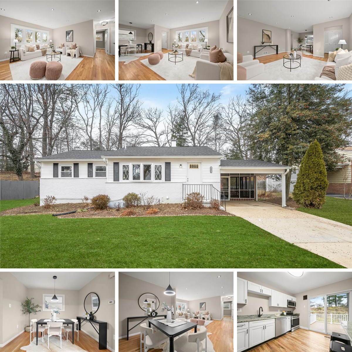 This fully renovated ranch-style home blends timeless design with modern upgrades, offering comfortable one-level living with added flexibility below. An attached carport and inviting screened porch set the stage as you arrive, while inside, refinished hardwood floors flow throughout the main level, accented by stylish light fixtures, recessed lighting, and fresh paint. The living room is bright and welcoming, highlighted by a bay window, and opens seamlessly to a dedicated dining room ideal for everyday meals or entertaining guests. Just off the dining room, the beautifully updated kitchen impresses with soft-close cabinetry, granite countertops, stainless steel appliances, a pantry, and a breakfast bar for casual seating. A sliding glass door leads to the deck, creating an easy indoor-outdoor connection. The main level also features a spacious primary bedroom with two closets, two additional bedrooms, and a fully renovated full bath with a tiled tub and shower surround. Conveniently accessed through the kitchen, the screened porch provides a relaxing transition to the outdoors. The lower level expands the living space with a large family room, versatile bonus rooms perfect for recreation, exercise, or hobbies, and an additional full bath. New carpet, a dedicated laundry room, and ample storage complete this level. Outdoor living continues on the deck overlooking a fenced backyard, offering space to relax, entertain, or play. Behind the scenes, extensive updates provide peace of mind, including a new roof, new water heater, updated lighting and electrical package, refinished main-level hardwood floors, and fully renovated bathrooms. Electric and plumbing permits are already in place. Located in Laurel, MD 20707, the home enjoys close proximity to shopping, dining, and everyday conveniences, including Laurel Towne Centre and Laurel Lakes Shopping Center. Nearby parks, trails, and recreational facilities enhance the lifestyle, while easy access to major commuter routes and transit makes this an ideal location for both comfort and connectivity.
