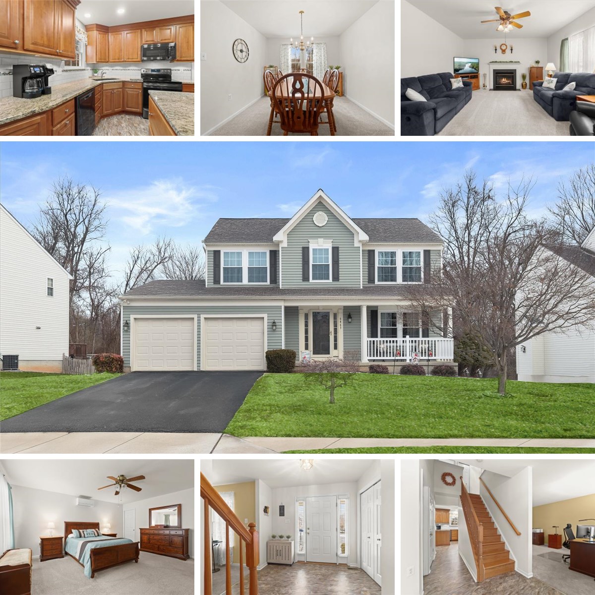 Welcome to 6463 Tydings Road, a meticulously maintained Colonial loaded with recent updates and timeless appeal. The welcoming foyer opens to gracious living and dining rooms, setting the stage for both everyday living and entertaining. The eat-in kitchen is a true highlight, featuring granite countertops, soft-close cabinetry, sleek appliances, a pantry, luxury vinyl tile flooring, and a charming breakfast area with a built-in granite-topped table and direct access to the deck. Just off the kitchen, the family room is anchored by a cozy fireplace, creating the perfect gathering space. A powder room, laundry room, and convenient garage access complete the main level.