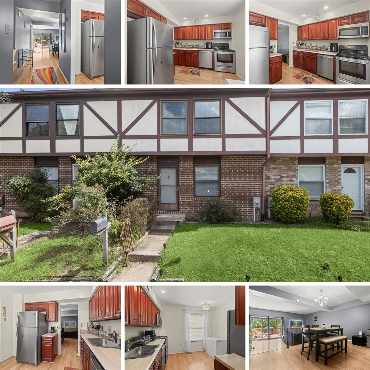 Welcome to the 7 Courts community of Parkville! This charming Tudor-style brick and stucco townhouse offers an inviting open floor plan designed for both comfort and entertaining. The spacious living room features luxury laminate floors, soaring ceilings, and access to the deck, creating a seamless flow for indoor and outdoor living. An elevated formal dining room connects effortlessly to the kitchen, perfect for hosting gatherings. The updated kitchen showcases modern counters, a stone backsplash, 36” soft-close cabinetry, and stainless steel appliances, making it as functional as it is stylish. Upstairs, the primary suite provides a private retreat with a walk-in closet and an en-suite bath boasting a ceramic tile walk-in shower. Two additional bedrooms and a full hall bath complete the upper level. The fully finished lower level offers versatility with a cozy wood-burning fireplace with brick surround, plenty of storage, laundry, and walk-out access to the fenced yard, patio, and storage shed. Ideally located near major commuter routes, including US-1, I-95, and I-695, this home combines convenience, charm, and modern updates in a sought-after community.