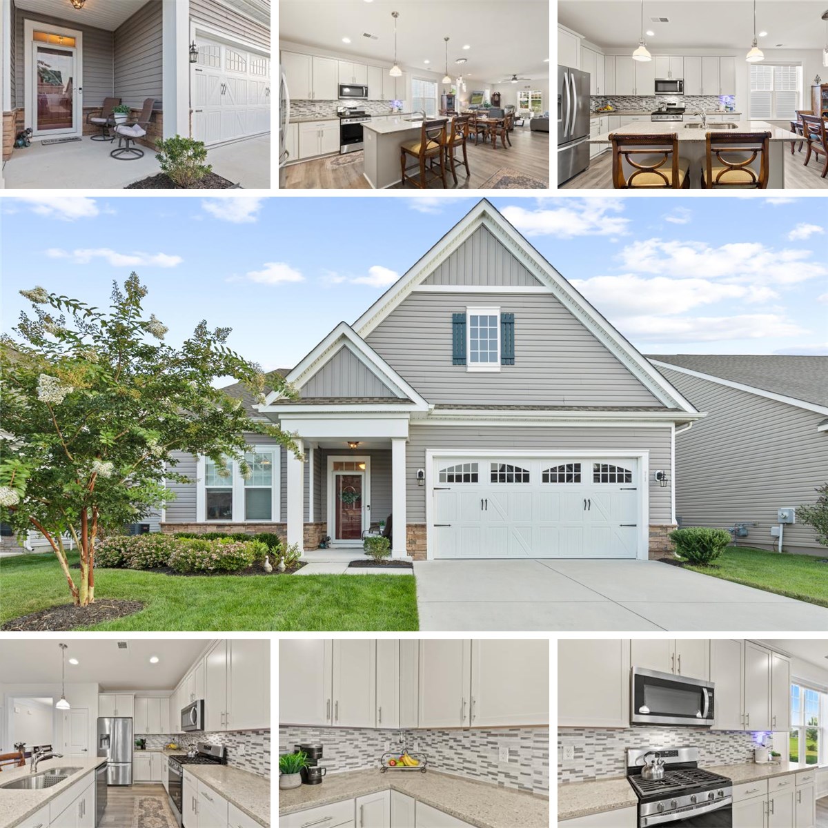 Welcome to 71 Champions Drive, nestled in the premier golf course, 55+ community of Heritage Shores. Just five years young and meticulously cared for, this home feels as fresh as the day it was built. Its coveted position directly on the 7th green delivers sweeping, uninterrupted views of lush fairways and a sparkling pond, a true golfer’s dream. Even the address says it all: “Champions.” A covered front entry welcomes you inside, where your eye is immediately drawn to the panoramic scenery beyond. The open-concept great room invites you to relax and linger, with seamless flow between the living, dining, and kitchen spaces. The kitchen is a chef’s delight, featuring granite counters, 42-inch custom cabinetry, a full suite of stainless steel appliances, and a generous center island with breakfast bar, the perfect hub for casual meals or lively conversation. Enjoy intimate gatherings at the breakfast bar or host larger celebrations in the spacious dining area. The living room offers a comfortable place to unwind, while French doors lead to the family room, wrapped in windows on three sides to showcase the golf course, immaculate greens, and tranquil pond with its playful fountain. Off the foyer, French doors open to a quiet home office, ideal for catching up on work or simply enjoying a peaceful retreat. The private primary suite is a serene haven, offering picture-perfect views, two walk-in closets, and a spa-like bath with dual vanities, a soaking tub, and a frameless glass shower with bench seating. Two additional uniquely styled bedrooms and a well-appointed hall bath are ready to welcome family and guests. A spacious laundry/mudroom connects directly to the oversized two-car garage. Step outside and discover the home’s showpiece, a custom outdoor living oasis designed for dining, cooking, lounging, and soaking in the spectacular surroundings. Mornings here are perfect for coffee by the pond’s gentle fountain, and evenings are made for cocktails as you watch golfers play through. Why wait to enjoy the coastal lifestyle when this perfectly maintained, move-in ready home is here for you now? Come experience 71 Champions Drive, where every day feels like a winning day.