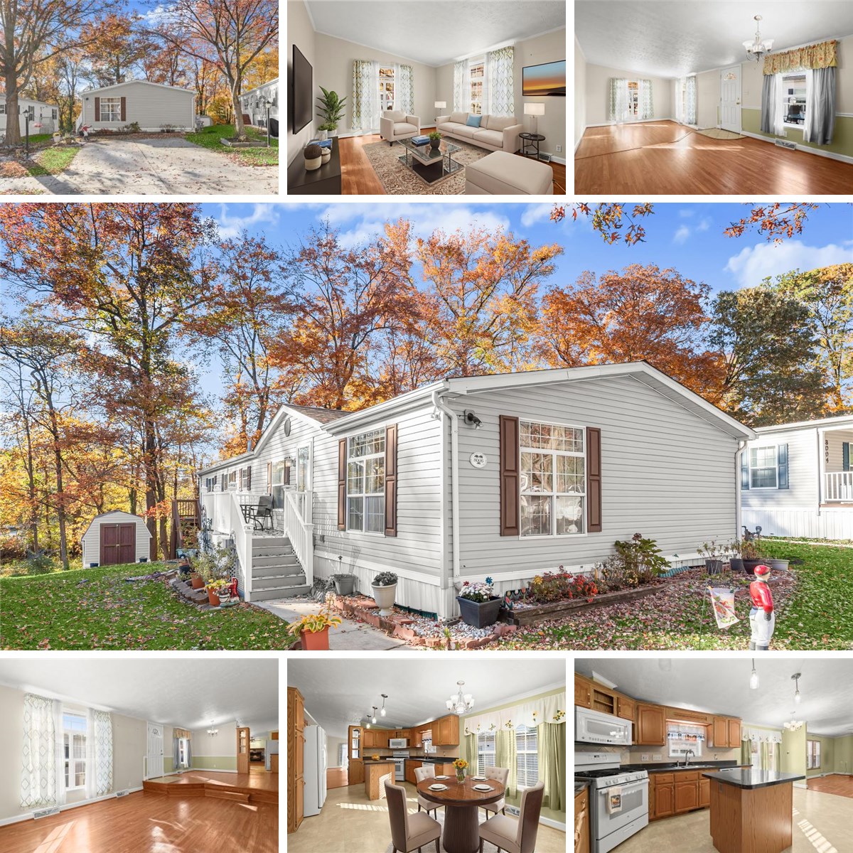 Welcome to this charming three bedroom, two bathroom home in Severn Mobile Home Park. Tall vaulted ceilings, abundant natural light, and elegant crown molding throughout make this move-in ready one-level home a true find. Step inside to an inviting front living room, while the eat-in kitchen features an island and dining area. The family room offers a cozy gas fireplace with a stone surround, and the adjacent laundry room provides access outside to the back deck overlooking woods. The primary bedroom has two closets and a private bathroom with a soaking tub and separate walk-in shower. Two additional bedrooms, one of which has a walk-in closet, and a second full bathroom with a walk-in shower and skylight complete the interior. Outside, enjoy the rear deck or the side porch, while a shed provides extra storage. Additional highlights include a brand new water heater and a roof with a Tamko warranty. Other recent improvements in the last few years include kitchen appliances, hallway bathroom remodel, and heat-wrapped pipes. Conveniently located off Telegraph Road with quick access to routes 100, 97, and 32, along with BWI, Ft. Meade and more. Some images have been virtually staged.