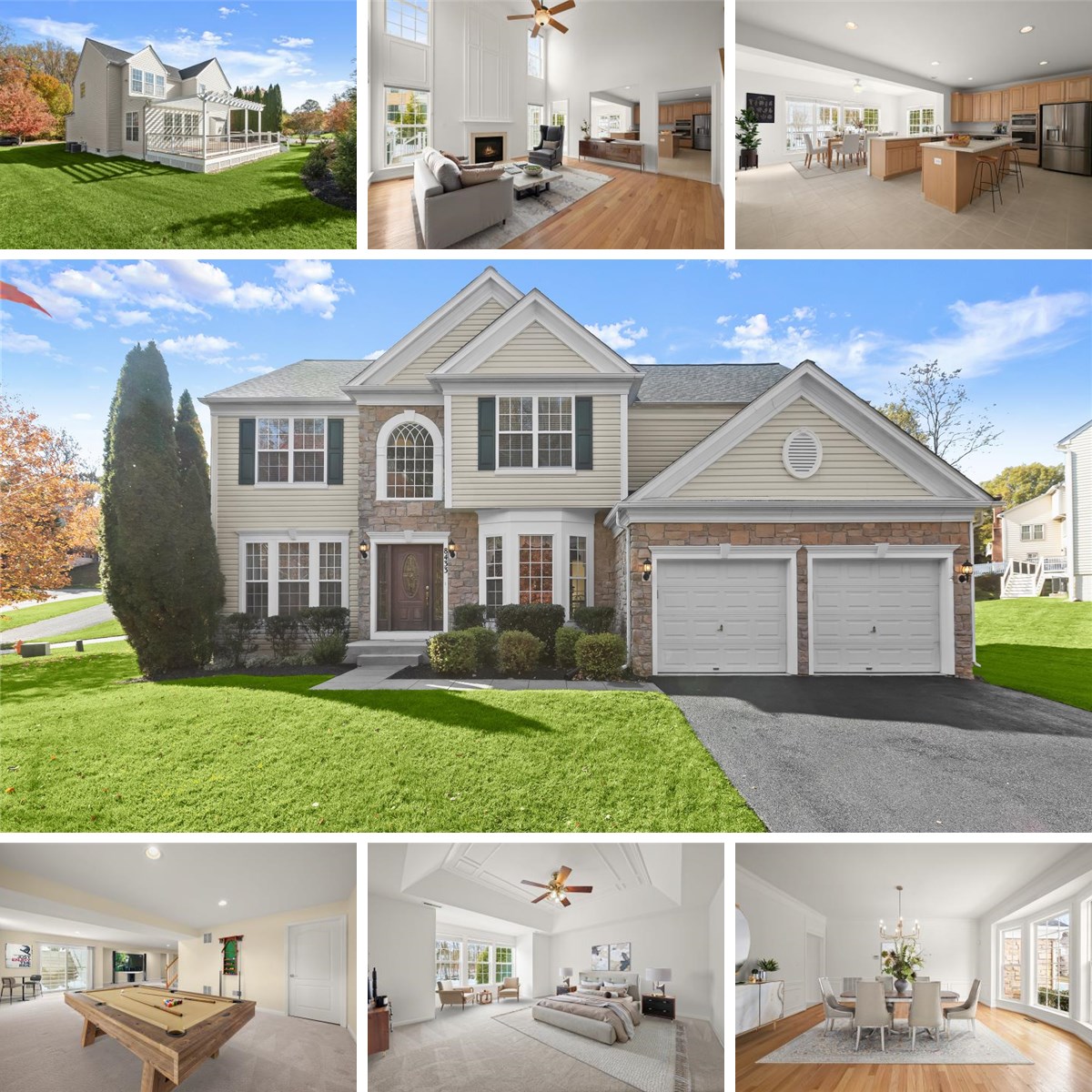 Stunning Colonial residence gracefully positioned on a premium lot in the sought-after Stonecrest Manor community, ideally situated across from protected land offering serene views. Freshly painted in a warm, modern white throughout the main and upper levels, this exceptional home boasts over 5,000 sq. ft. of luxurious living space and showcases numerous updates including the roof, luxurious primary bath, new carpet, deck, and more. A striking stone-accented façade and Pella wood door enhance the curb appeal and sets the tone for what awaits inside. A grand two-story foyer welcomes you in, framed by refined formal living and dining rooms accented with detailed molding and architectural columns. The dining room is highlighted by a spacious bay window that captures picturesque views of the protected woods beyond. Rich hardwood flooring flows seamlessly into the breathtaking two-story family room, where a floor-to-ceiling gas fireplace creates a stunning focal point and an inviting gathering space. The open layout transitions effortlessly into the gourmet kitchen and sun-filled breakfast room with direct access to the expansive deck. Designed for both entertaining and everyday living, the kitchen features an oversized island with breakfast bar and gas cooktop, stainless steel appliances, and beautiful wood cabinetry. A private home office, powder room, and laundry room complete the thoughtfully designed main level. Upstairs, the impressive primary suite offers a grand retreat with a tray ceiling, generous walk-in closet, and a beautifully updated spa-inspired bath featuring a soaking tub, oversized frameless shower with designer tile, private water closet, and an extended dual vanity spanning the full wall length. Three additional spacious bedrooms and a full bath complete the upper level. The finished lower level expands the living space with extra-wide stairs leading to the backyard, a large game and recreation area, full bath, and abundant storage. Outdoors, enjoy the expansive composite deck with pergola overlooking the cherry blossom trees in the professionally landscaped grounds. A spacious two-car garage and oversized driveway provide ample parking. Ideally located near major commuter routes, as well as premier shopping, dining, and entertainment, this exceptional home blends timeless elegance with modern luxury in a highly desirable setting.
