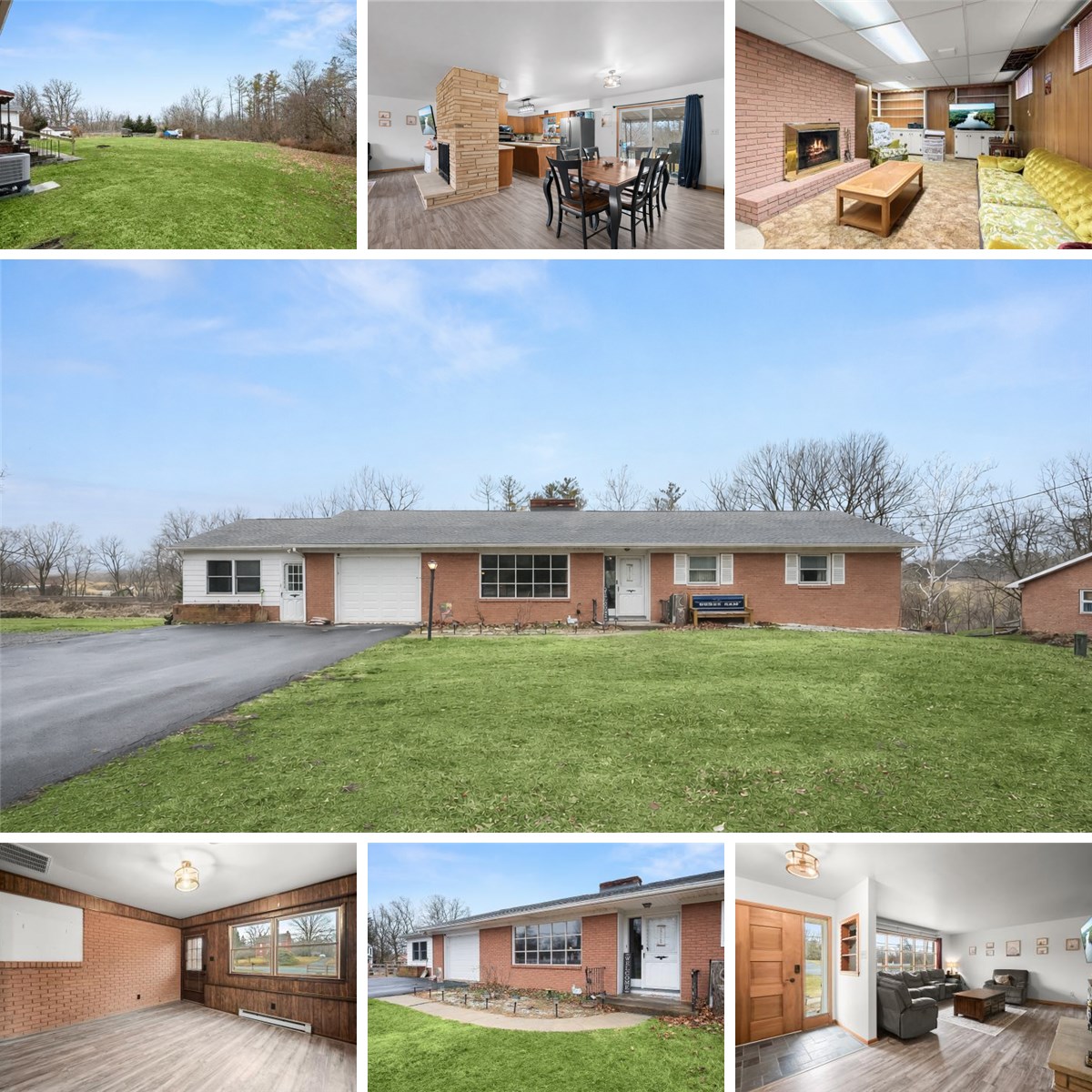 Custom-built rancher on a premium 1.46-acre lot backing to serene Beaver Creek, offering over 3,500 sq. ft. of living space with a full guest suite addition. The open floor plan features living and dining areas anchored by a stacked stone wood-burning fireplace, with sliding doors leading to the patio and backyard. The spacious kitchen showcases wood cabinetry, including a custom swing-out pantry for easy organization. Access the primary bedroom from the main living area through a half bath and laundry, with two additional bedrooms and a full hall bath rounding out the main floor. The garage-adjacent addition is a separately metered 1-bedroom, 1-bath efficiency apartment with its own kitchen, washer/dryer, hot water heater, utilities, and multiple entrances. The finished basement includes a family room with brick-surround wood-burning fireplace, efficiency kitchen, a large bonus room, full bath, and ample storage.