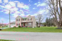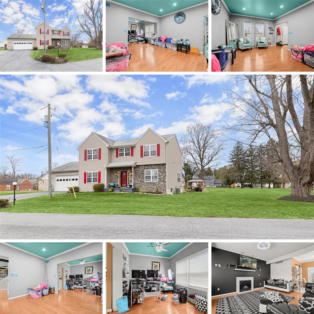 Tucked away on a quiet private block with no through street, this beautifully appointed home features attractive vinyl and stone siding along with a spacious two-car garage. Step into the main level foyer where hardwood floors flow effortlessly throughout the formal living room, dining room, and family room. The living room is accented with crown molding and recessed lighting, while the dining room offers both crown molding and custom blinds for a refined touch. The family room impresses with high ceilings and a cozy gas fireplace, creating an inviting space for gatherings. The well-appointed kitchen features a breakfast bar, 42-inch cabinetry, stainless steel appliances, ceramic tile flooring, a decorative backsplash, granite countertops, and a sun-filled breakfast area with access to the laundry room, garage, and rear deck and patio. The upper level hosts a spacious primary bedroom with modern luxury plank flooring, two closets, including a walk-in, and an en-suite bath complete with a jetted soaking tub, walk-in shower, and double vanity. Three additional bedrooms and a hall bath showcasing a beautifully updated ceramic tile walk-in shower with a glass door complete the level. The lower level is designed for entertainment and versatility with an exercise area, a bar area with storage, and an attached full bath. Outside, a detached office equipped with electric, heating, and air conditioning provides the perfect space for client meetings or remote work. For added convenience, major commuter routes nearby include I-695, I-795, and I-83, ensuring easy travel in all directions.