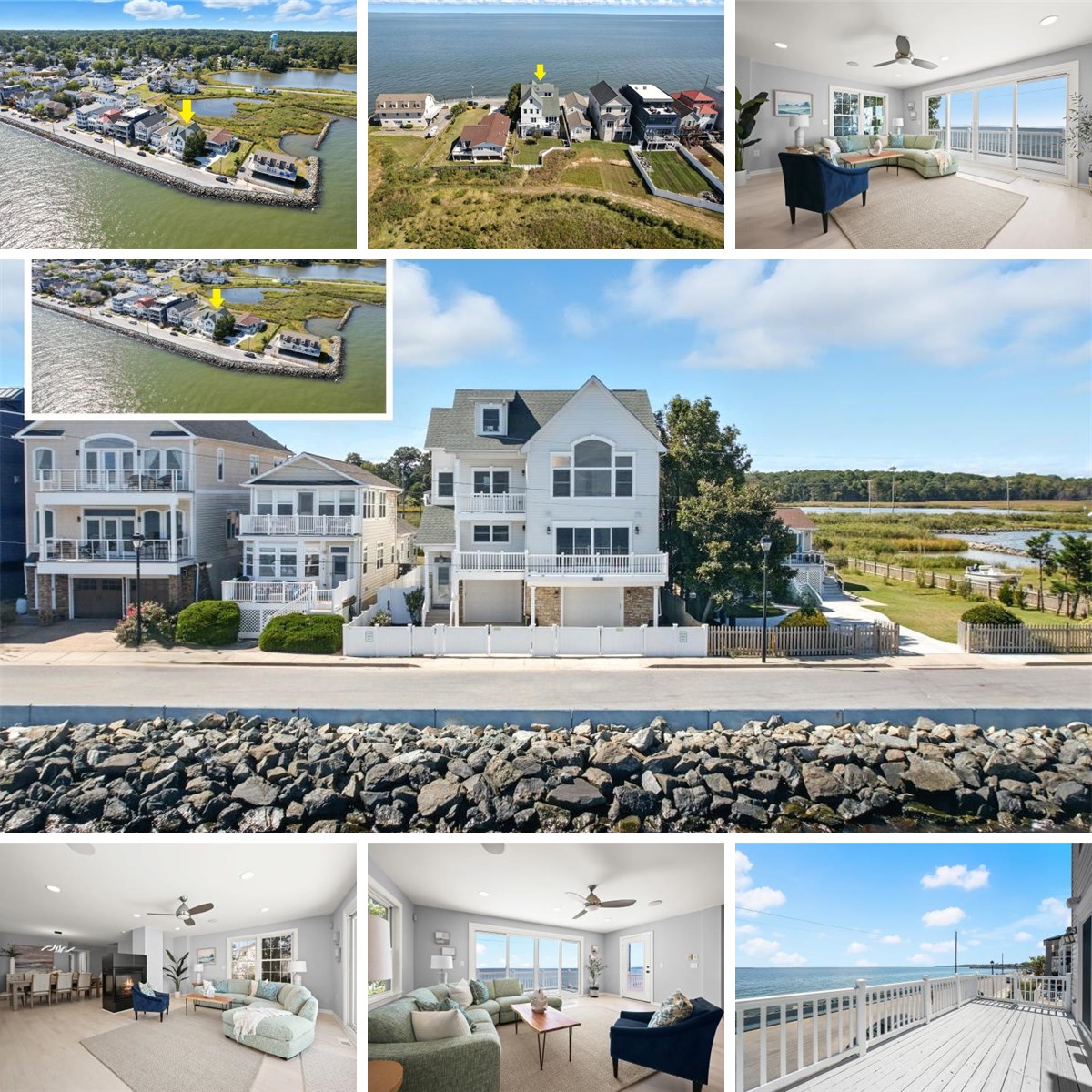 Perched on three expansive lots with prime frontage, this North Beach home offers breathtaking water views from nearly every window and multiple decks overlooking the Chesapeake Bay. Refinished hardwood floors in a light tone with both warm and cool graining complement the freshly painted interiors, while design-inspired tile and finishes elevate every renovated bathroom. Modern updates include recessed lighting throughout, new ceiling fans in all bedrooms, replaced light fixtures, a refaced fireplace, and a new hot water pump, alongside thoughtful structural improvements such as the removal of a wall to open the staircases on the second and third floors. Recently featured in the Washingtonian June 2024 "Water's Edge" article, this home radiates sophistication and coastal charm.